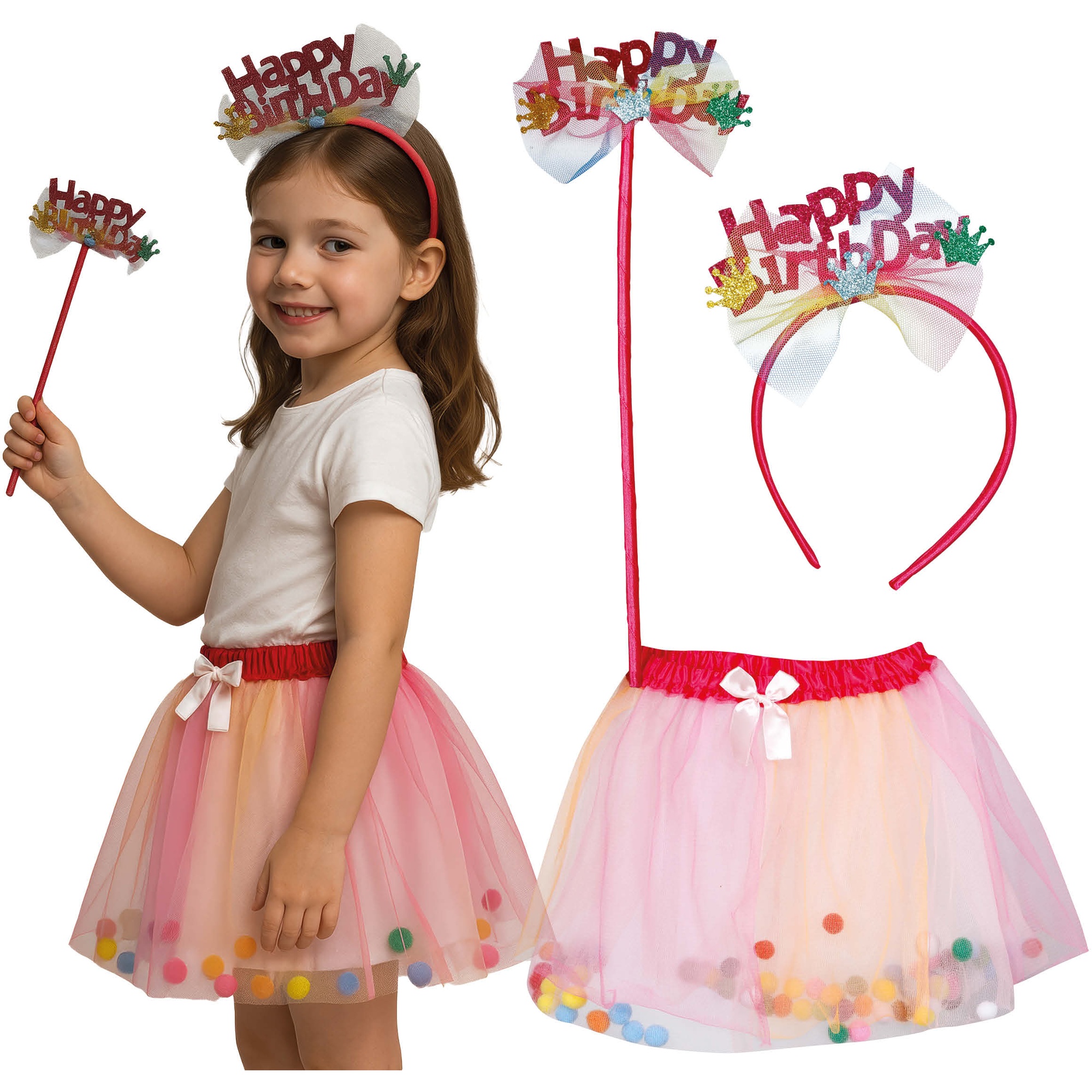 Ensemble "Happy Birthday" avec serre?tête, tutu et baguette