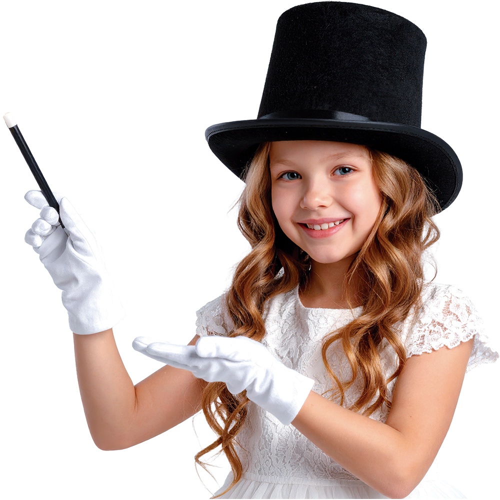 Ensemble de magicien pour enfant avec haut-de-forme, gants et baguette