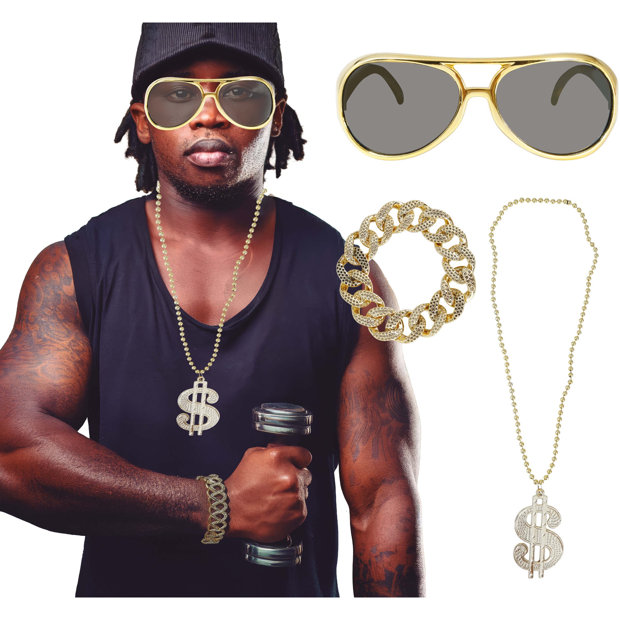 • Style hip-hop doré et tape-à-l'oeil pour vous faire remarquer lors de fêtes ou de photocalls.