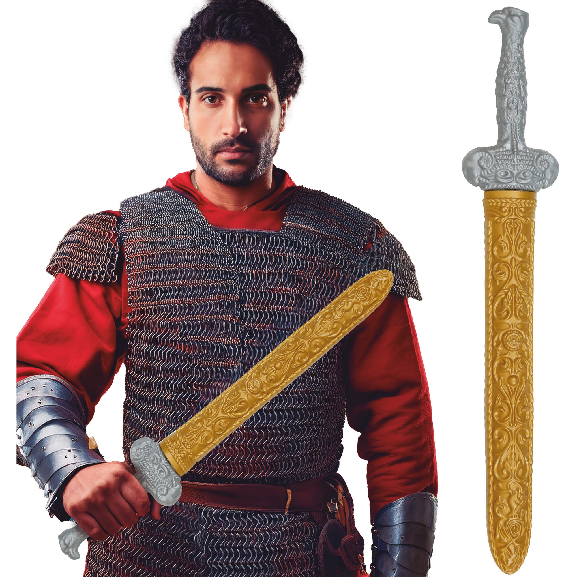 Accessoire idéal pour parfaire votre costume de soldat ou de gladiateur, avec une finition classique et saisissante. Fabriquée en PVC léger et résistant, elle présente un décor ornemental inspiré de l'époque romaine. Le fourreau décoratif facilite le transport et protège la pièce - parfait pour le Carnaval, les fêtes à thème et les reconstitutions. Conception sûre et flexible, pensée pour un usage lors d'événements et de jeux de rôle.
