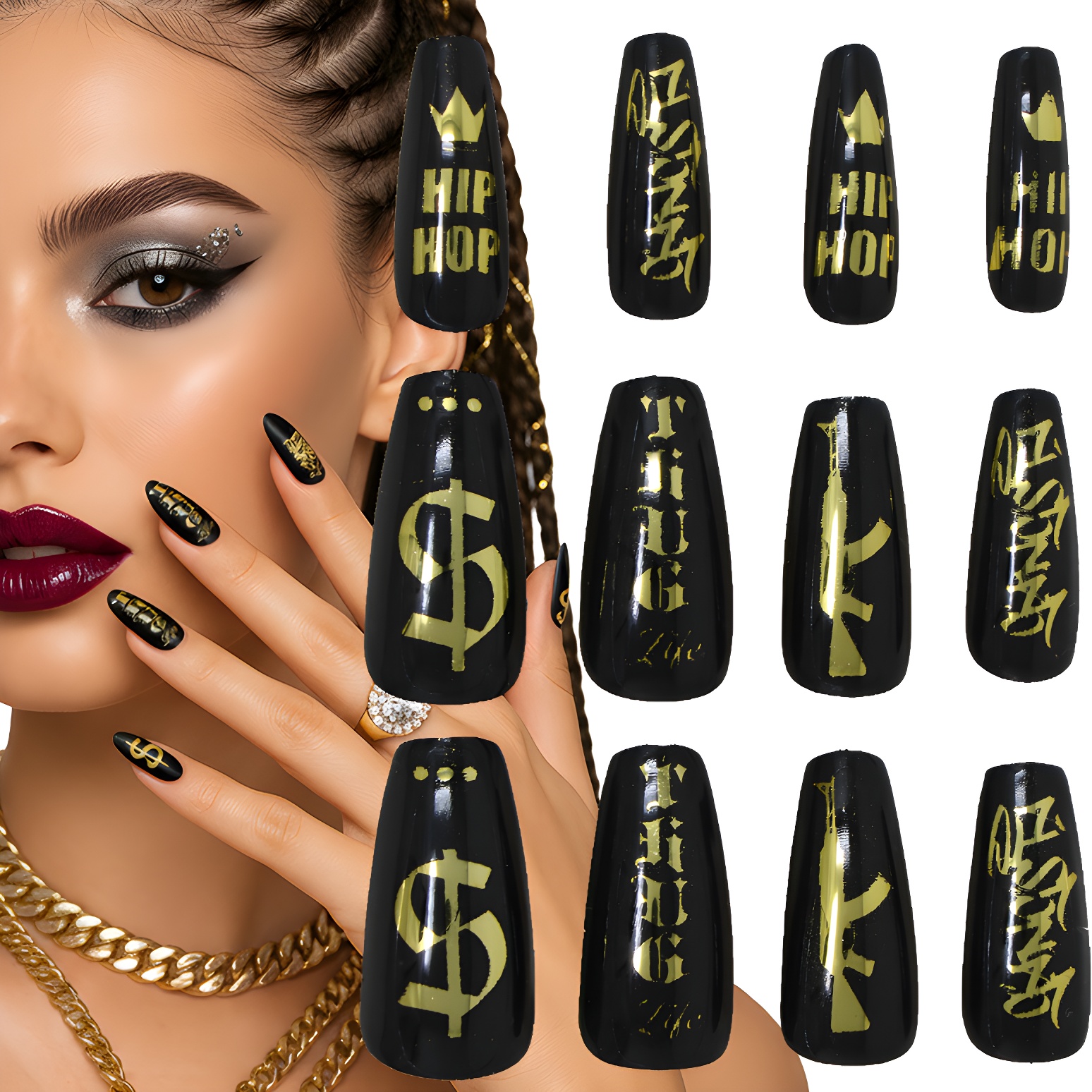 Faux-ongles "Thug Life" - lot de 12