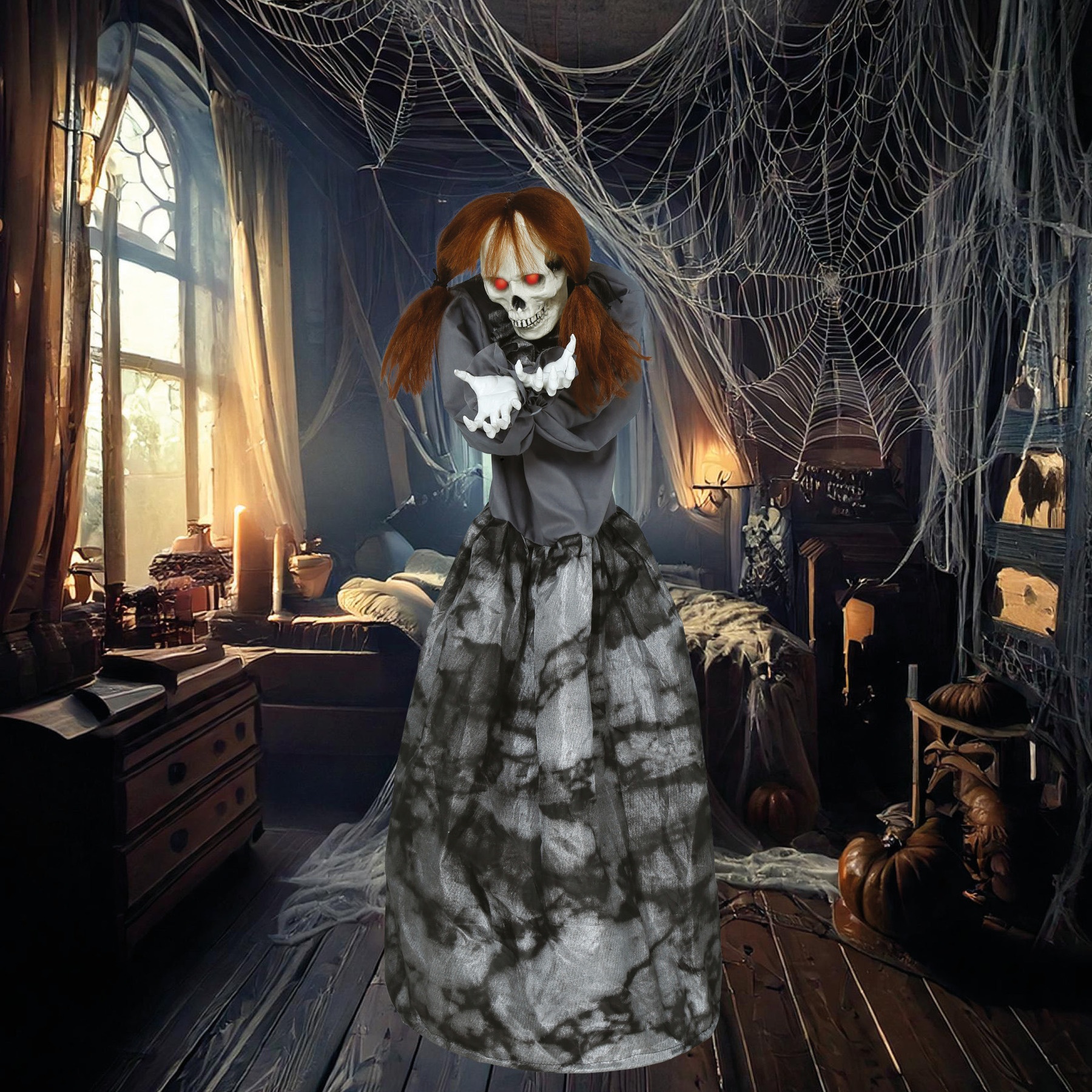 Femme squelette avec lumière, son et mouvement de 1,20 m