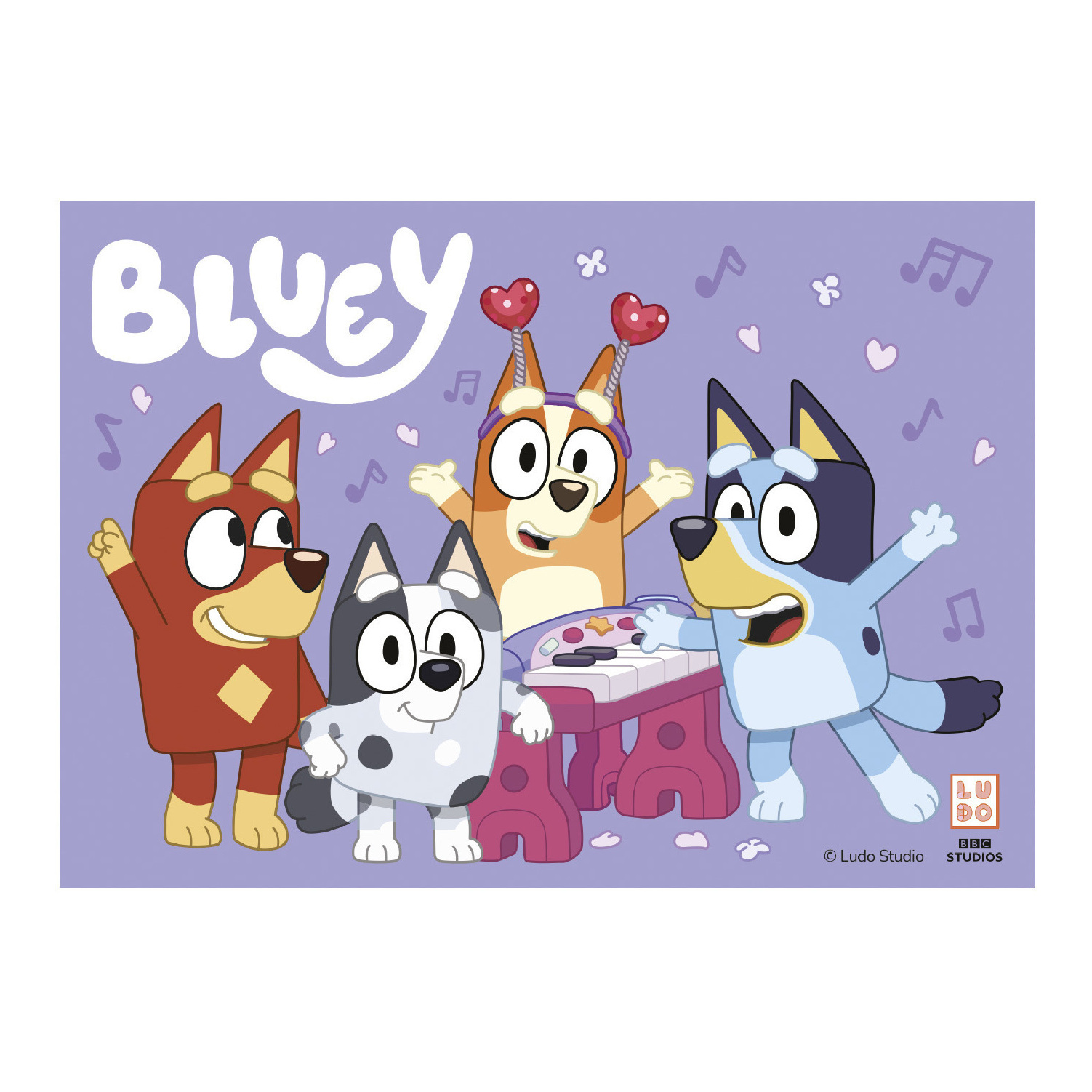 Feuille comestible Bluey et Bingo, violette - 14,8 x 21 cm