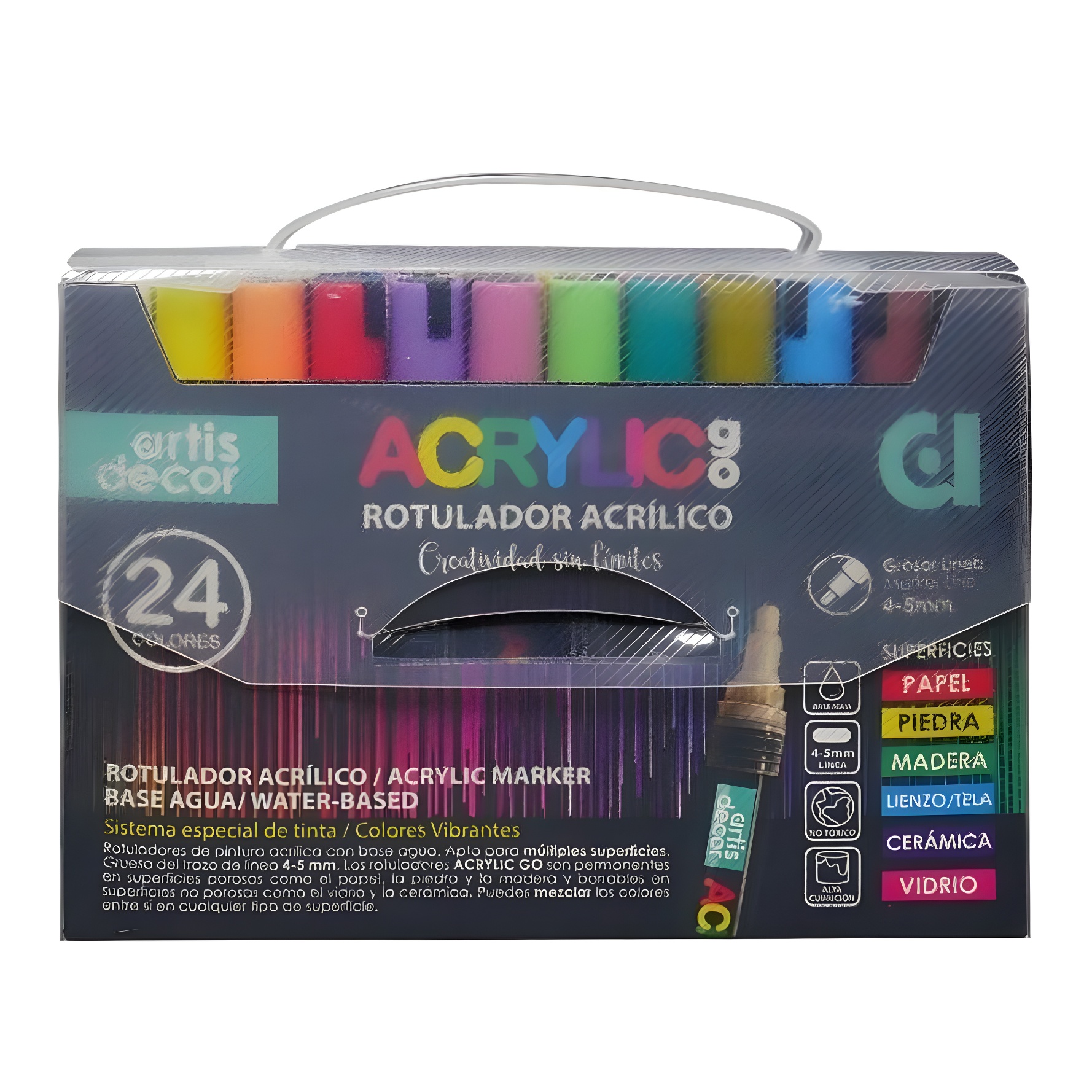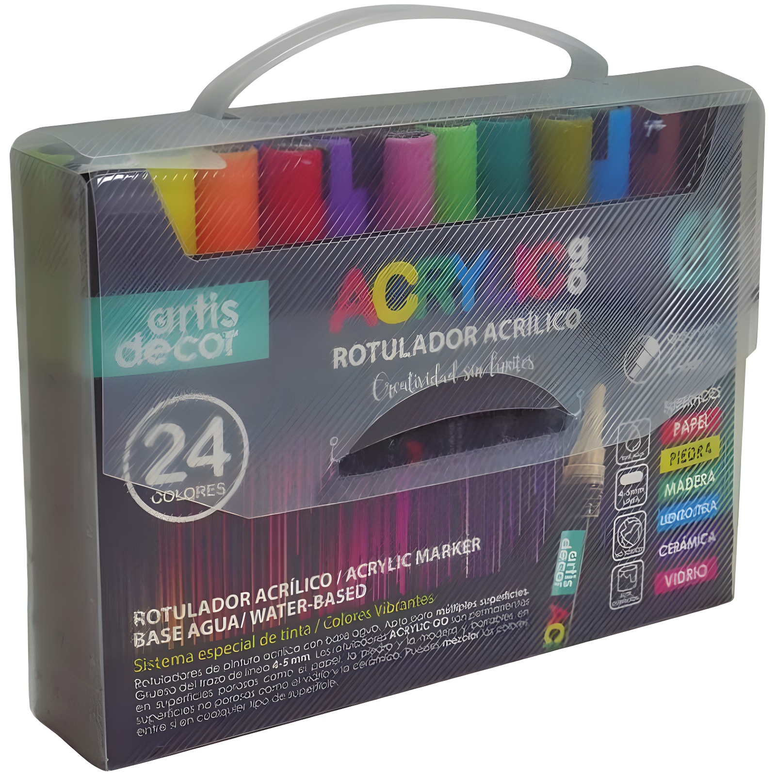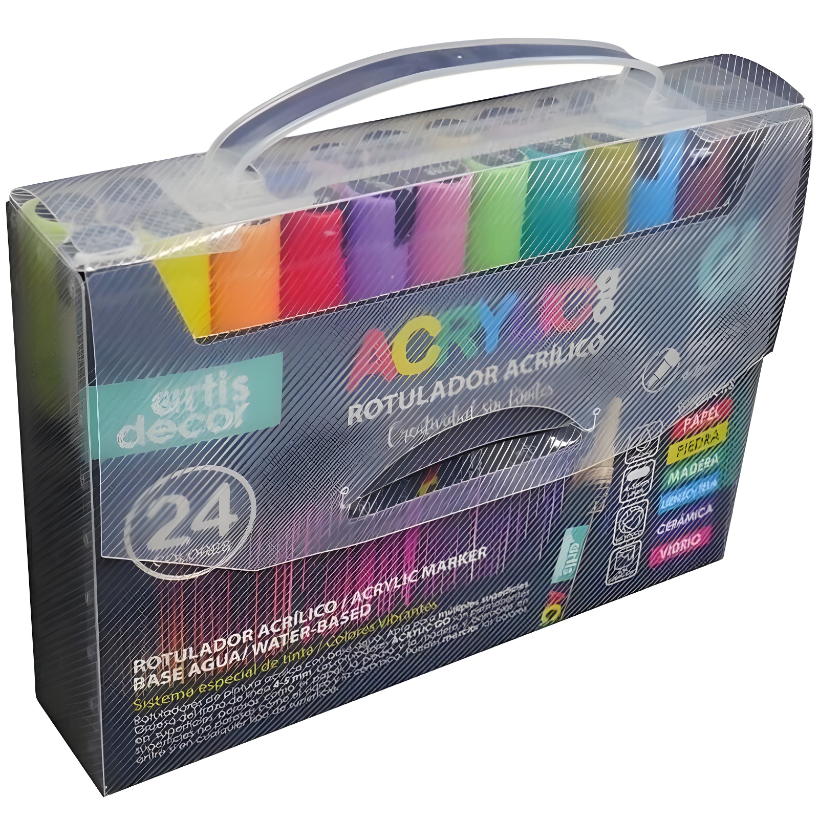 • Lot de 24 feutres acryliques à base d'eau.