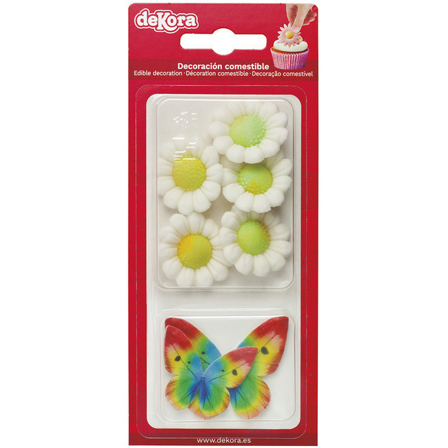 Figures en sucre de fleurs et de papiers de riz de papillons - Dekora - 9 unités