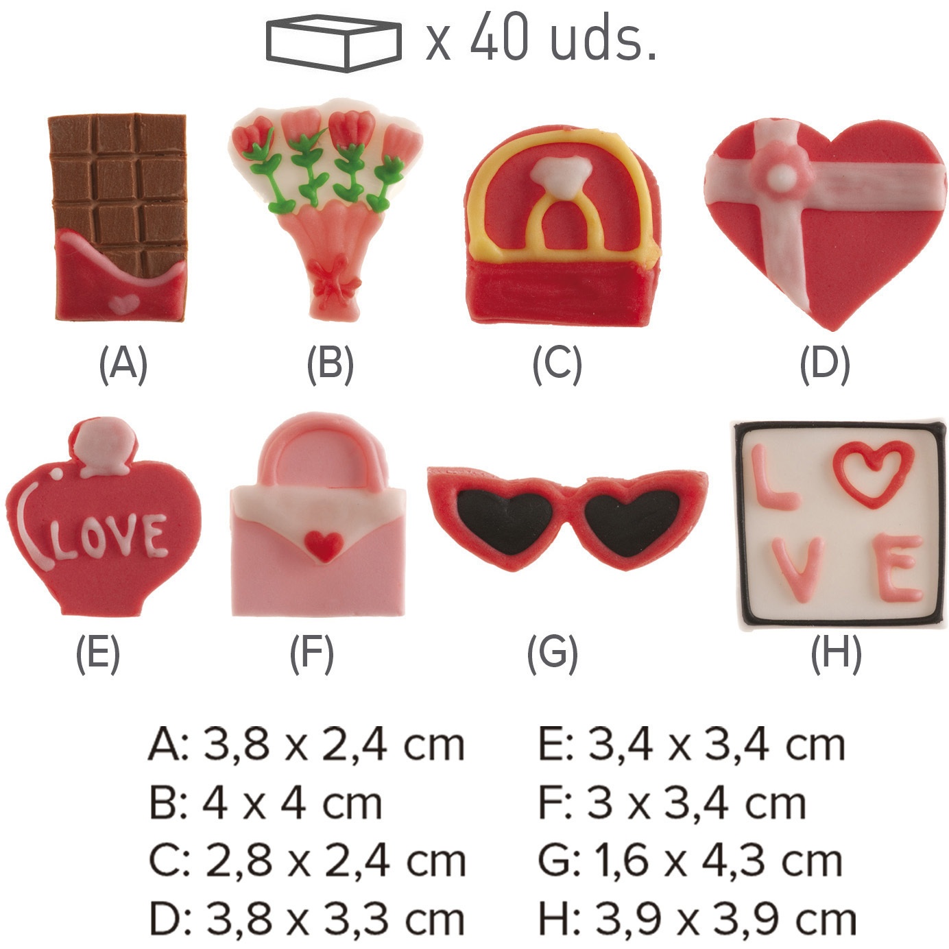 Figurines en sucre pour la Saint-Valentin - 40 pièces