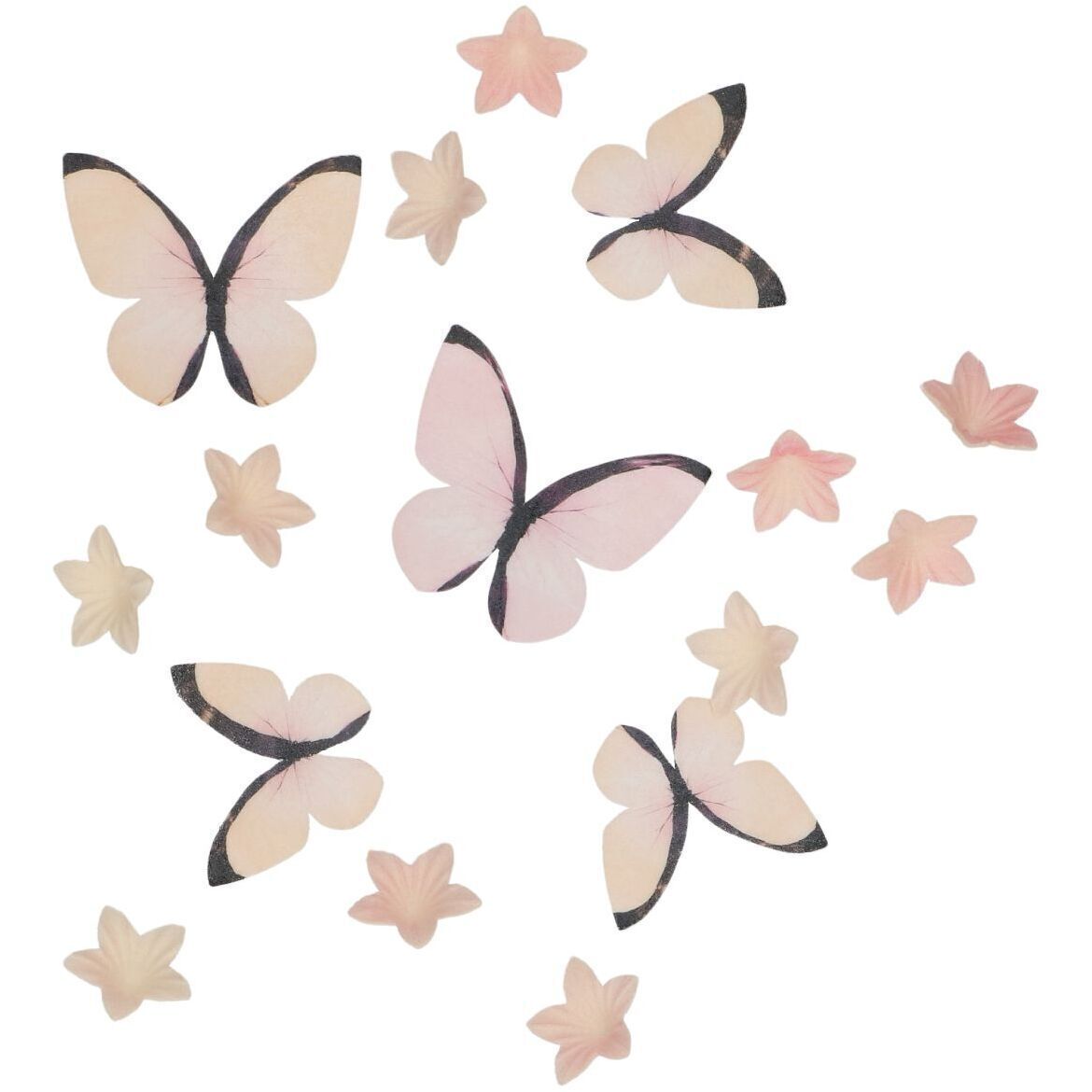 Galettes de mini fleurs et papillons rose pêche - 30 pièces