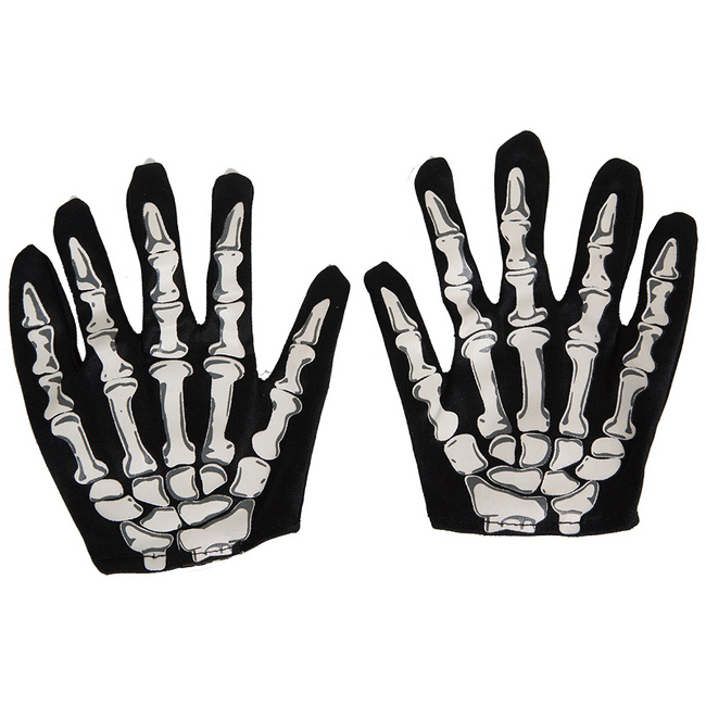 Ces gants noirs ont le dessin des os sur le dessus en blanc. Ils sont parfaits pour compléter le déguisement des plus jeunes.