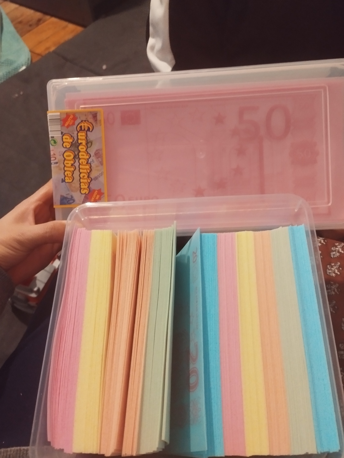 Set surprenant de gaufrettes comestibles avec un design de billets en différentes couleurs. Livré dans une boîte en plastique pratique pour les conserver le plus longtemps possible et dans la meilleure qualité.