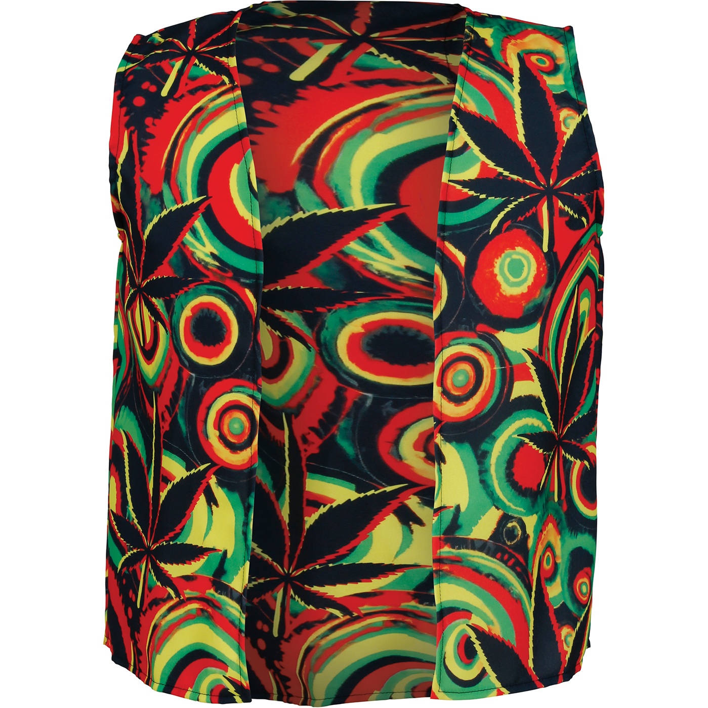 Gilet au motif vibrant et aux couleurs intenses qui attirent le regard. Sa coupe ouverte sans manches facilite l'enfilage et permet de le porter par?dessus n'importe quel vêtement. Confectionné en polyester léger, il garantit confort et tombé fluide pour profiter de la fête avec style. Parfait comme pièce forte pour le carnaval et les soirées à thème.
