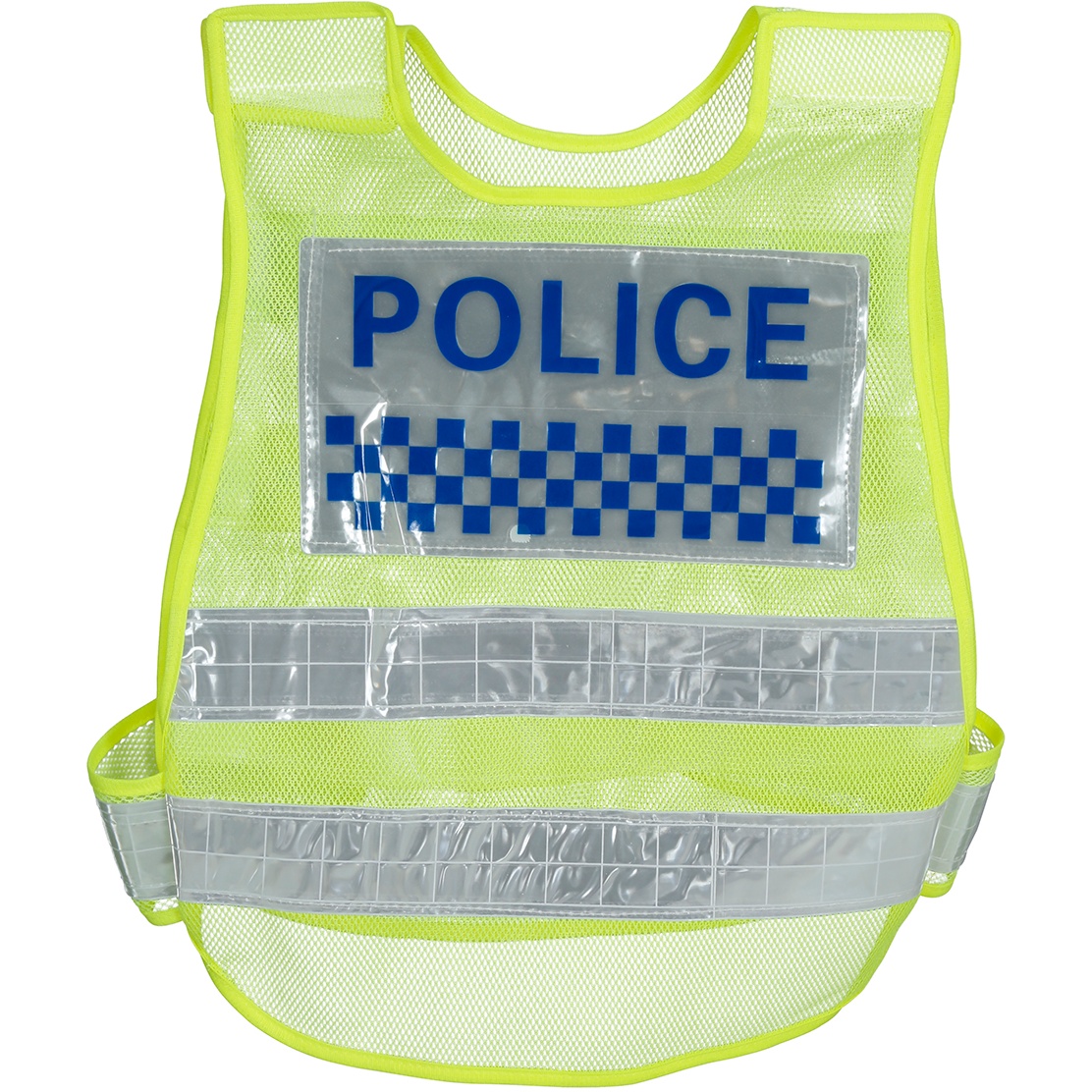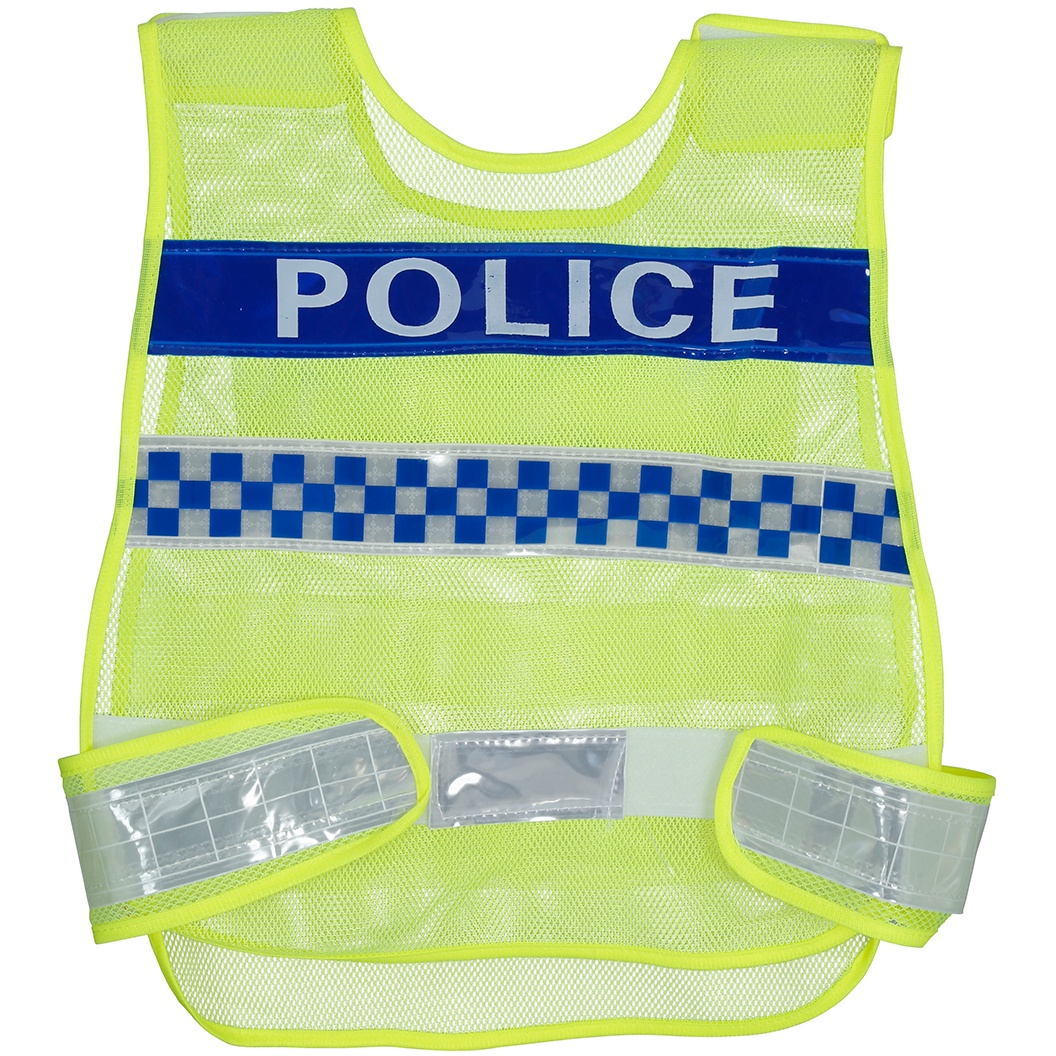 Gilet de police routière jaune conçu pour les adultes. Parfait pour le carnaval, les fêtes et les événements thématiques lorsque vous recherchez un accessoire visible et immédiatement reconnaissable. Il présente l'inscription "POLICE", des bandes à damier et des bandes réfléchissantes pour un rendu réaliste. Léger et facile à enfiler, il constitue l'élément parfait pour compléter un déguisement ou pour l'animation d'événements.