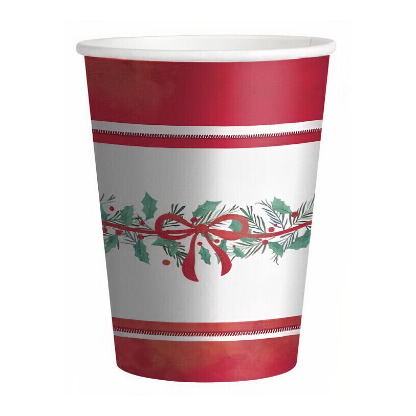 Gobelets de 270 ml avec gui et ruban rouge - 6 unités