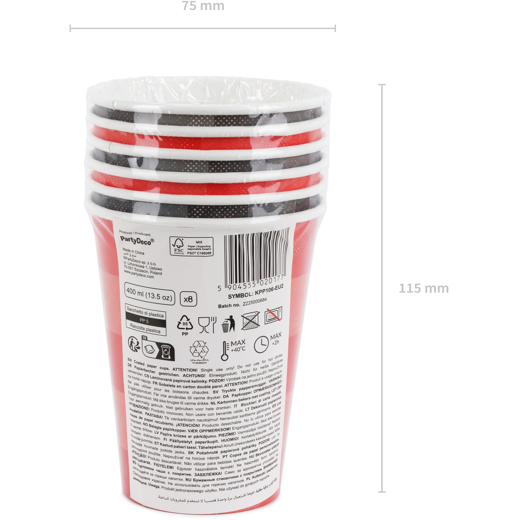 • Lot de 6 gobelets - parfaits pour vos barbecues et réceptions (motif à carreaux, rouge et noir).