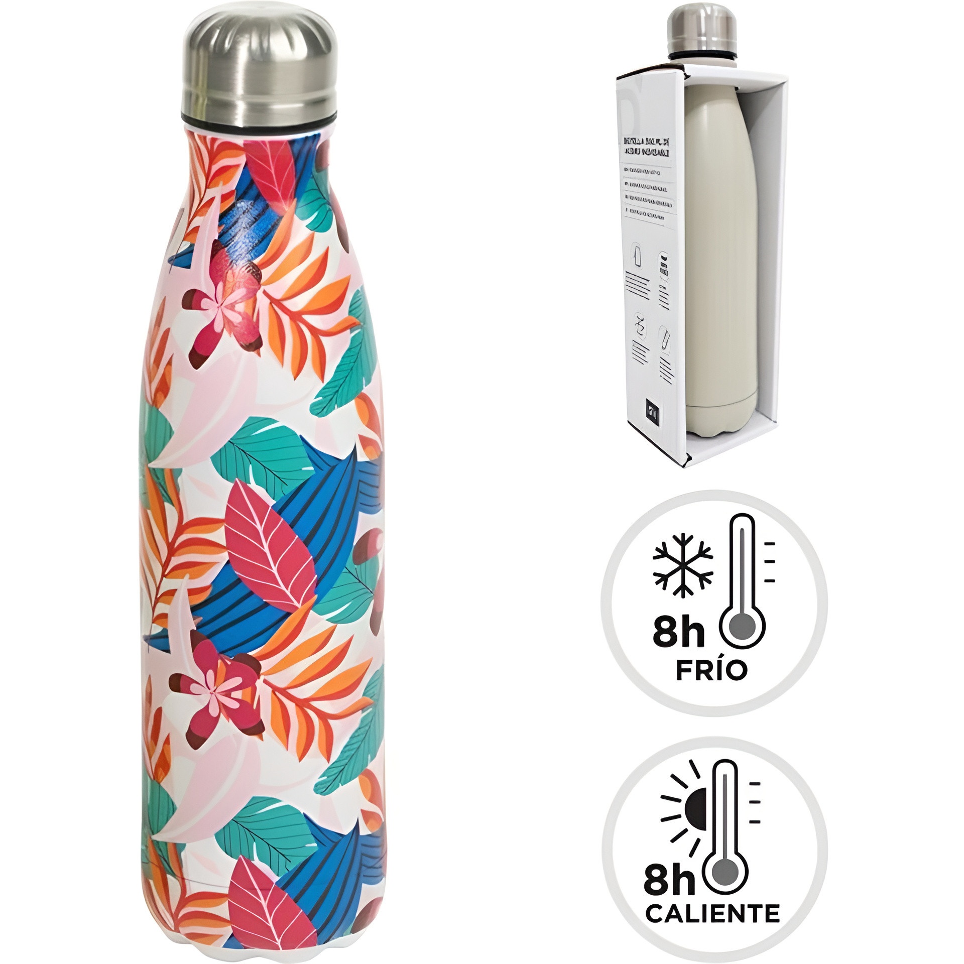 Gourde isotherme au motif tropical joyeux qui apporte une touche de style à vos boissons. Conserve le froid et le chaud pendant 8 heures pour que vous puissiez apprécier vos boissons à la température idéale. Son format compact et décoratif en fait un choix pratique pour le quotidien et les activités de loisirs.