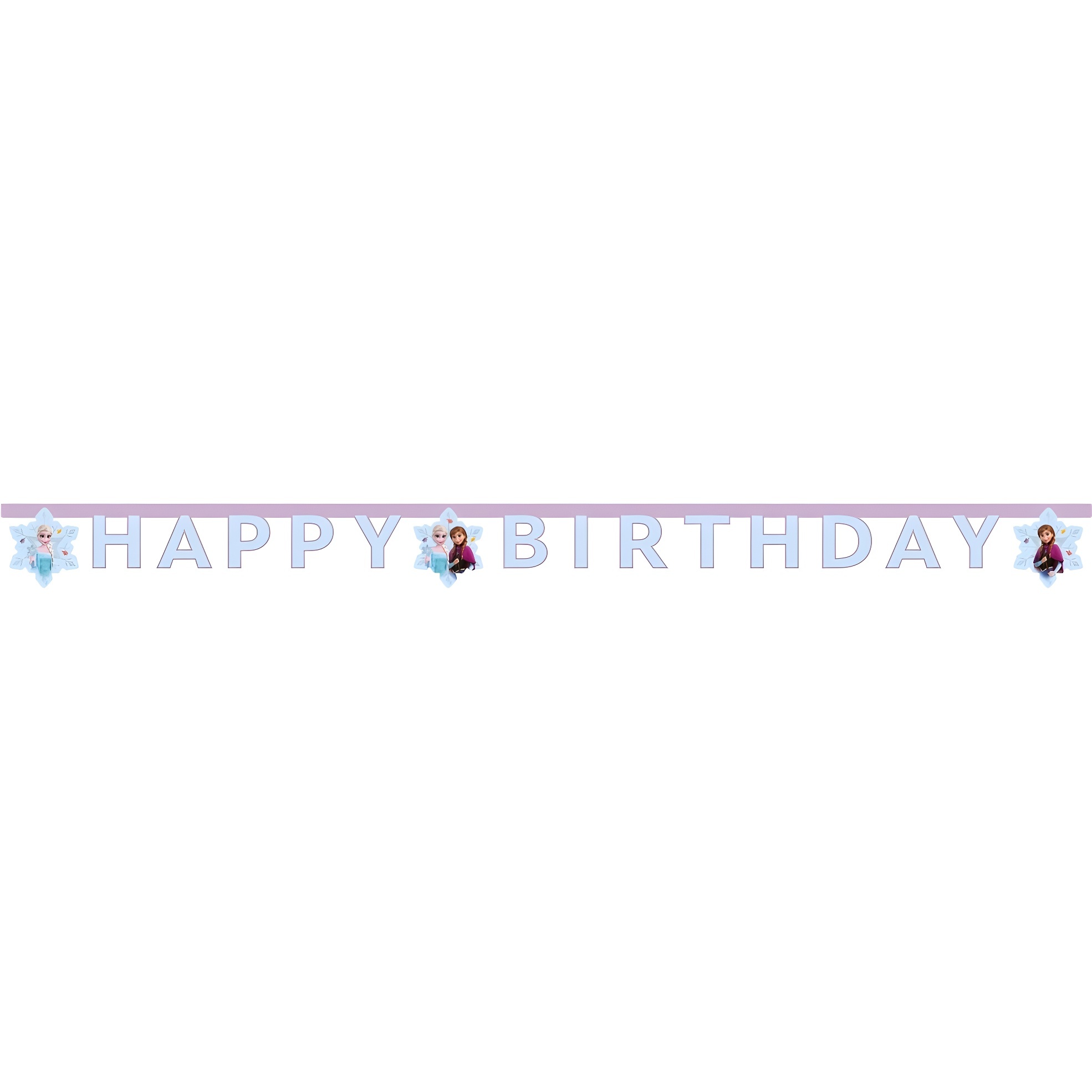 Guirlande à thème Frozen avec les lettres "HAPPY BIRTHDAY" et motifs d'Elsa et Anna, idéale pour créer l'ambiance d'un anniversaire pour votre enfant.