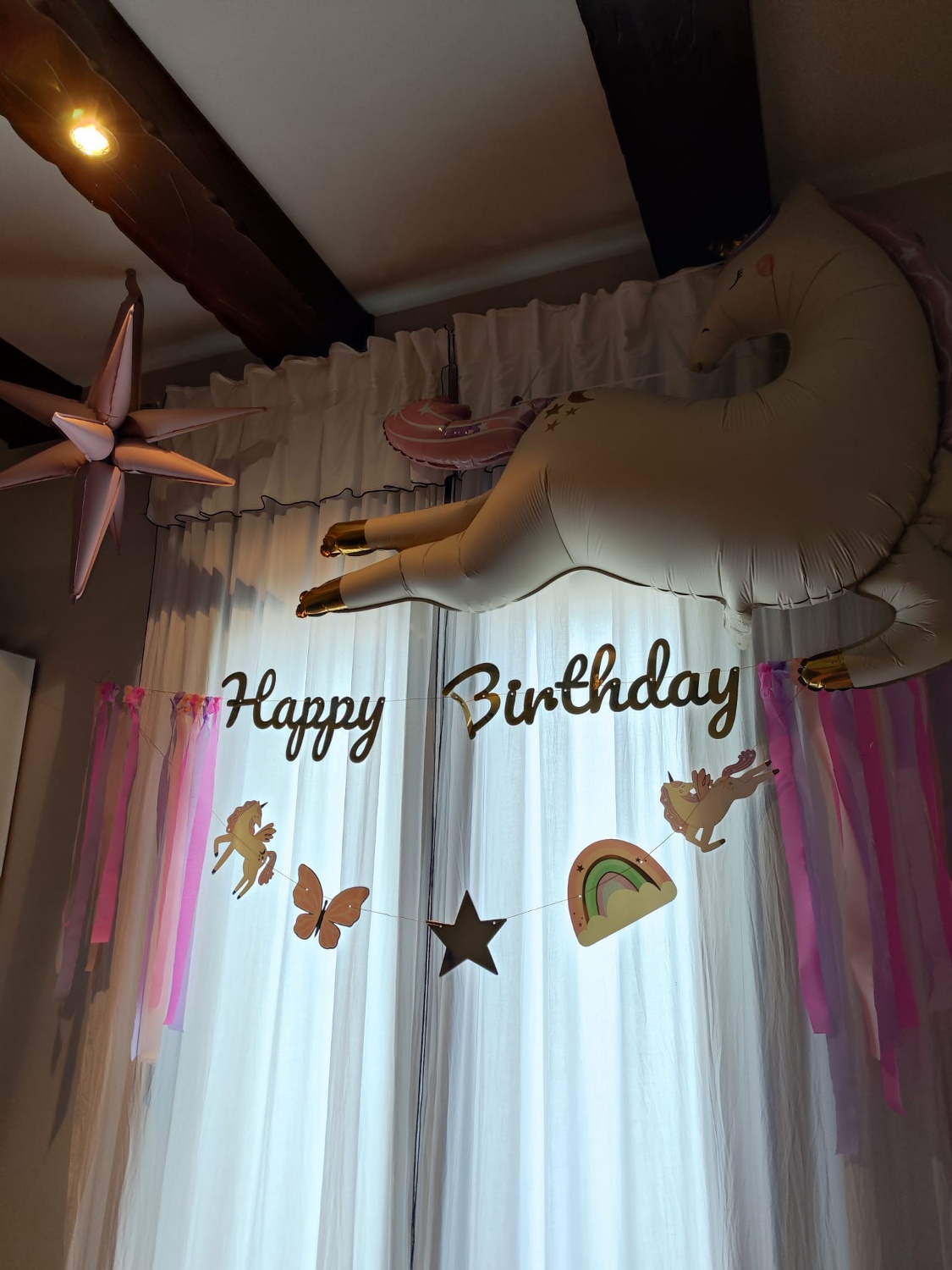 Guirlande de Licornes Joyeux Anniversaire avec rubans de 2,30 m