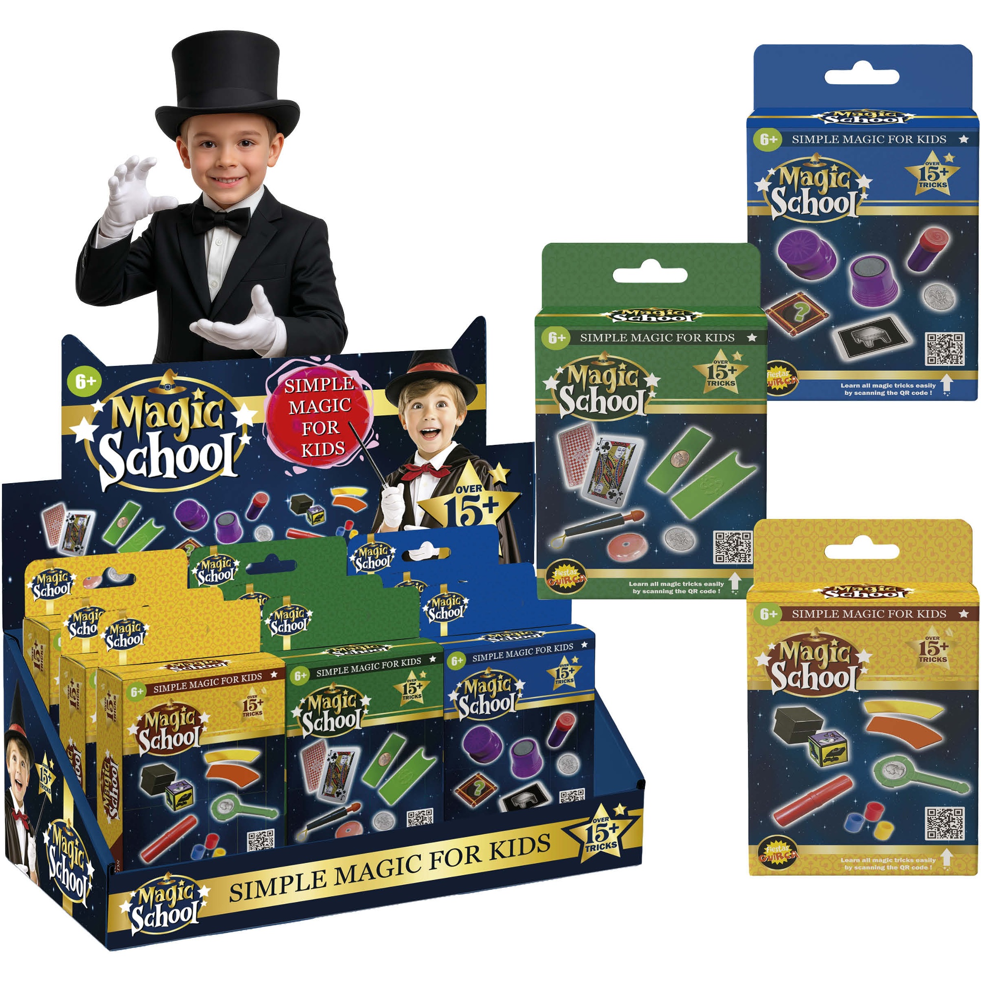 Pack de 12 tours de magie spécialement conçu pour les enfants. Des tours simples à maîtriser qui permettent à votre enfant de préparer rapidement des spectacles amusants pour les réunions et anniversaires. Pièces en PVC résistantes et adaptées aux petites mains. Ce kit favorise la créativité, la coordination et la confiance sur scène. Présentation soignée en blister individuel, parfait comme cadeau ou activité de groupe.