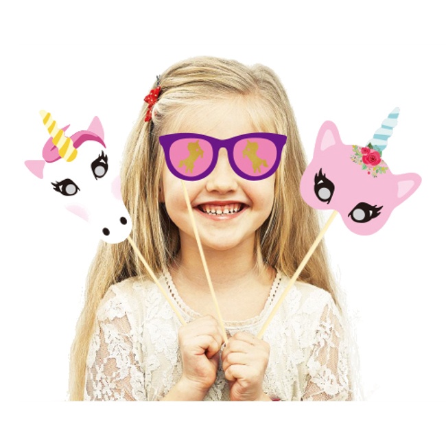 Ensemble de belles pièces colorées sur le thème des licornes, que vous pourrez intégrer au photobooth de votre fête d'anniversaire ou événement spécial.