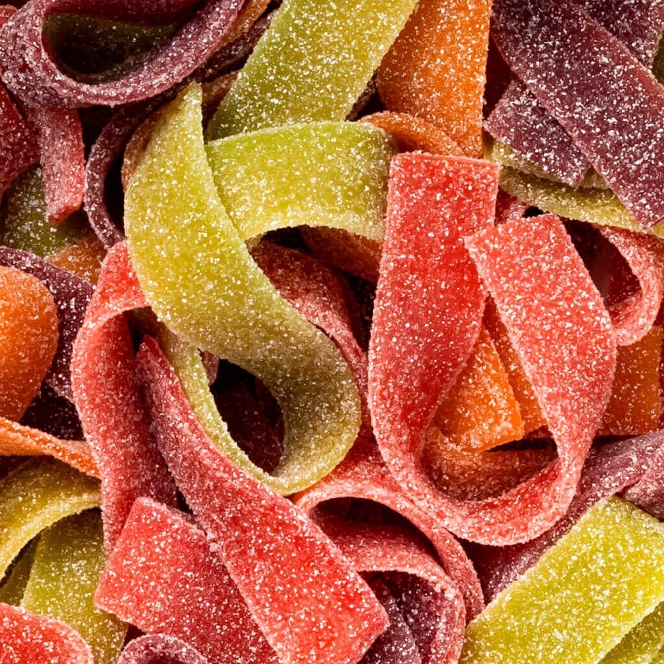 Ingrédients: sucre, sirop de glucose et fructose, farine de blé (contient du gluten), acidifiant: acide malique, acide citrique, acide lactique ; dextrose, graisse de palme, amidon de maïs, correcteur d'acidité: malates de sodium, lactate de sodium, citrates de potassium; concentré végétal: carthame, spiruline, pomme, citrouille, carotte, myrtille, cassis, radis, tomate; arômes, antioxydant: acide ascorbique ; sel.