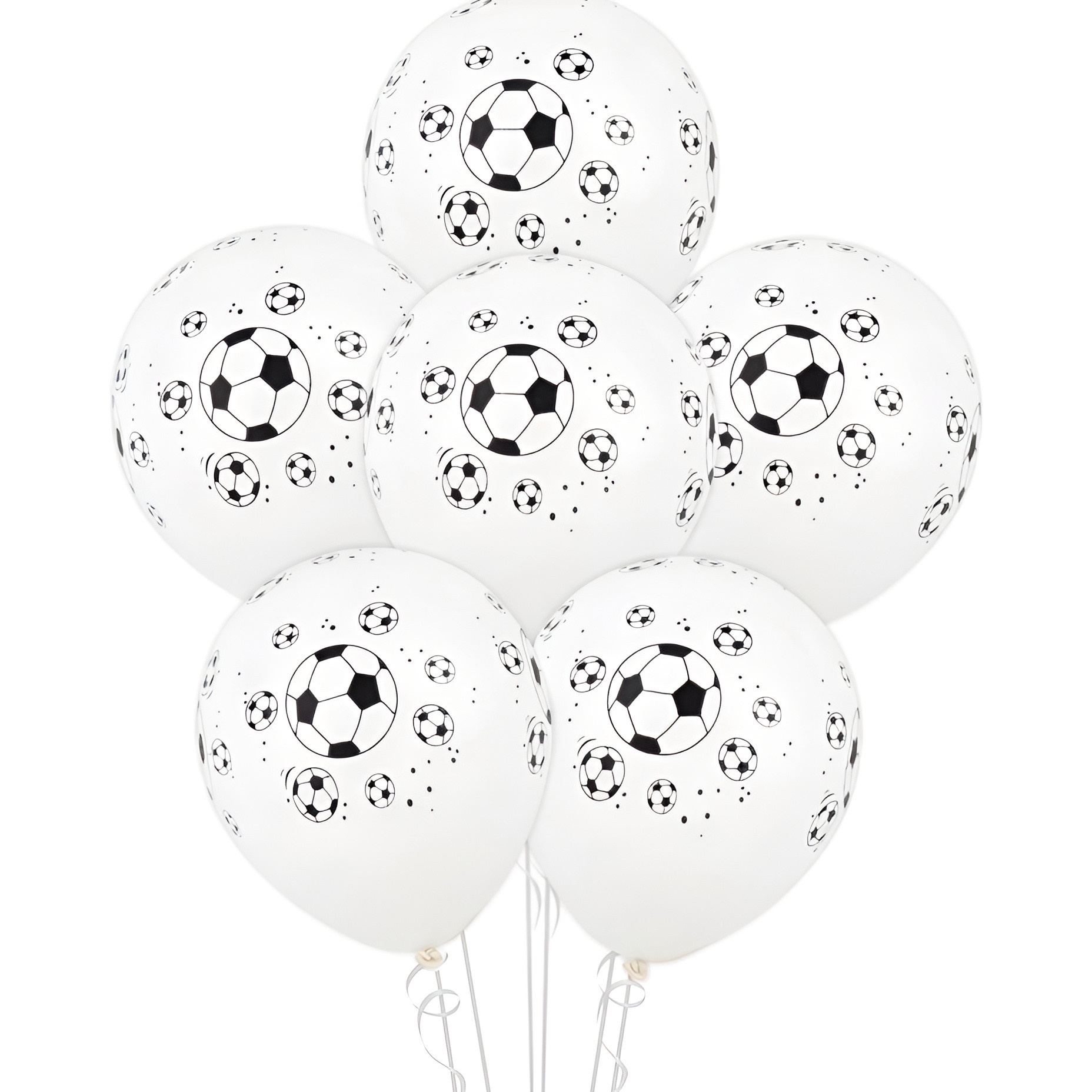 Lot de 6 ballons au motif ballon de football, conçu pour les fêtes d'enfants et les événements sportifs. Ils apportent une note décorative thématique et joyeuse, compatible avec tous types d'ambiances. Faciles à gonfler et à installer, ils sont une solution rapide pour donner vie à votre fête.
