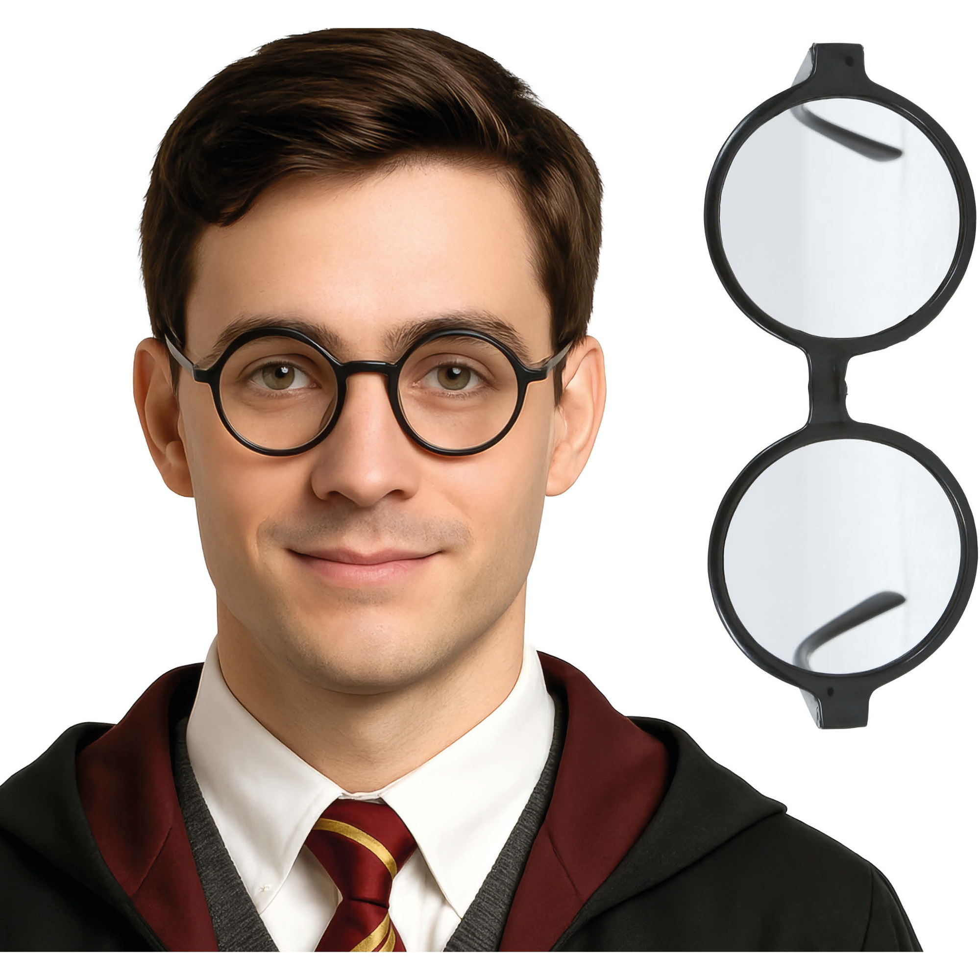 Lunettes rondes classiques, parfaites pour compléter un déguisement de magicien, de professeur ou d'élève d'une école de sorcellerie. La monture noire reproduit le style emblématique des personnages de fantasy et apporte un rendu authentique à votre tenue de cosplay. Légères et confortables, elles s'adaptent à la plupart des visages et se mettent en place très facilement. Idéales pour le Carnaval, les soirées déguisées, le théâtre et les séances photo.