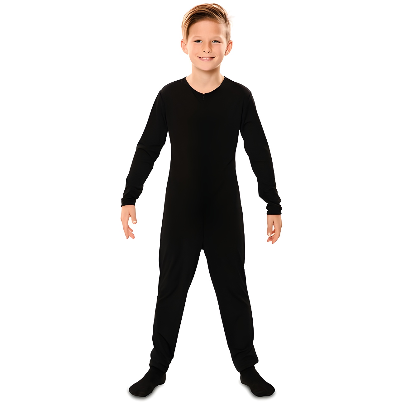 Vous pouvez l'utiliser pour le mettre sous n'importe quel déguisement et ne pas avoir froid. Cette combinaison est confectionnée avec un tissu élastique et s'adapte parfaitement. Convient aussi bien pour fille que pour garçon.