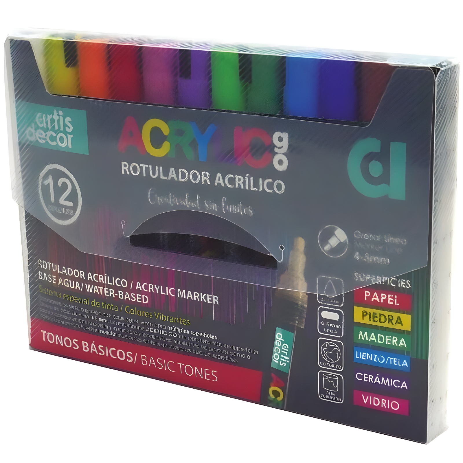 • Pack de 12 marqueurs acryliques à base d'eau.