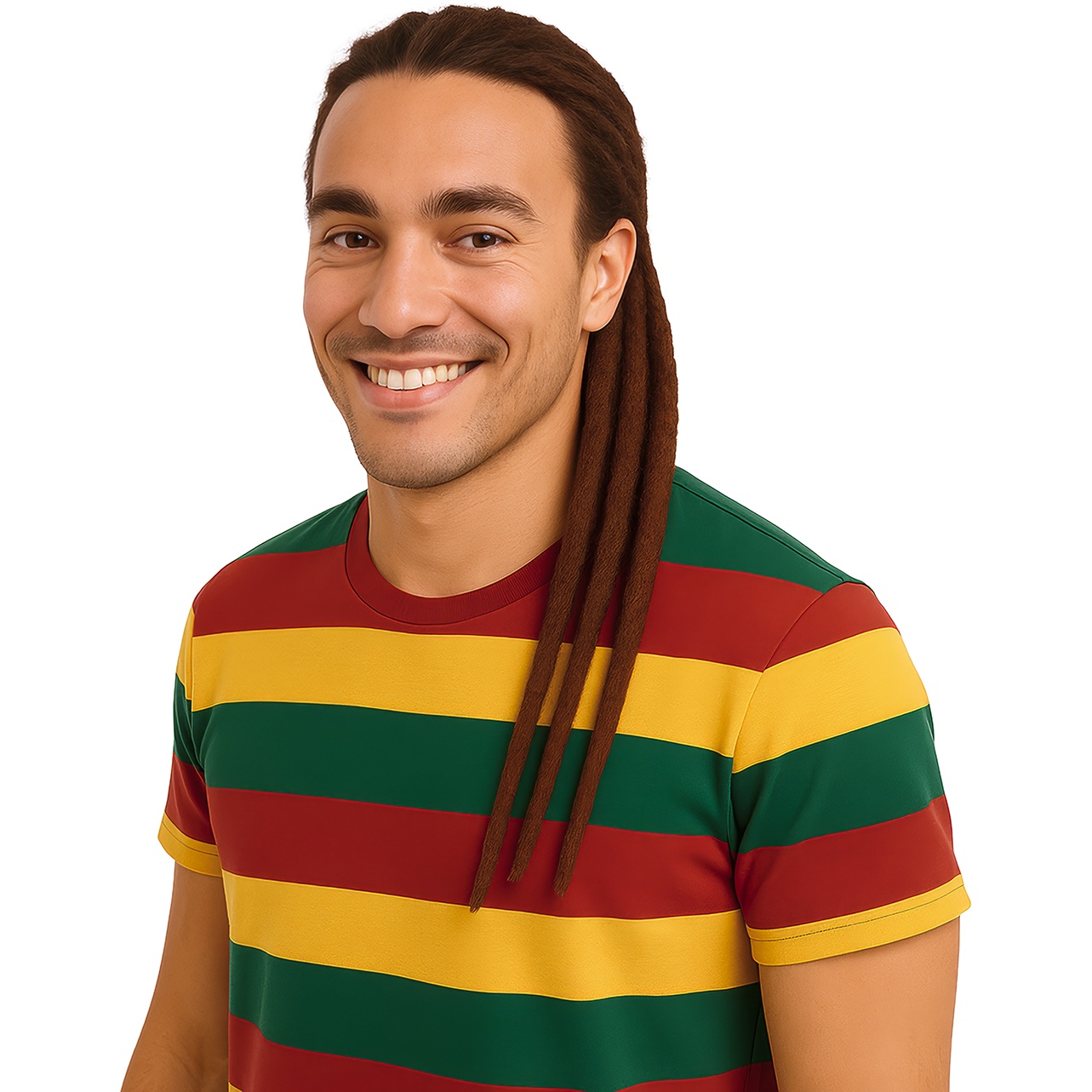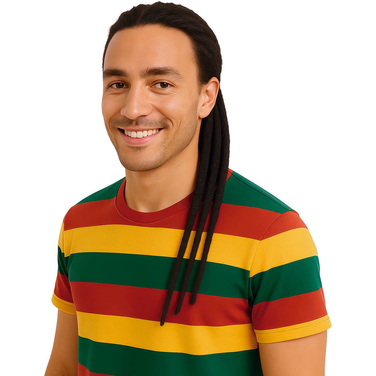3 mèches rasta noires de 60 cm conçues pour apporter une touche reggae et remarquée à votre look. 60 cm de longueur pour du volume et du mouvement instantanés. Finition en fibres synthétiques à l'aspect naturel et poids léger pour un confort optimal. Faciles à poser et à associer à votre coiffure habituelle. Idéales pour le Carnaval, les soirées à thème et les événements musicaux.
