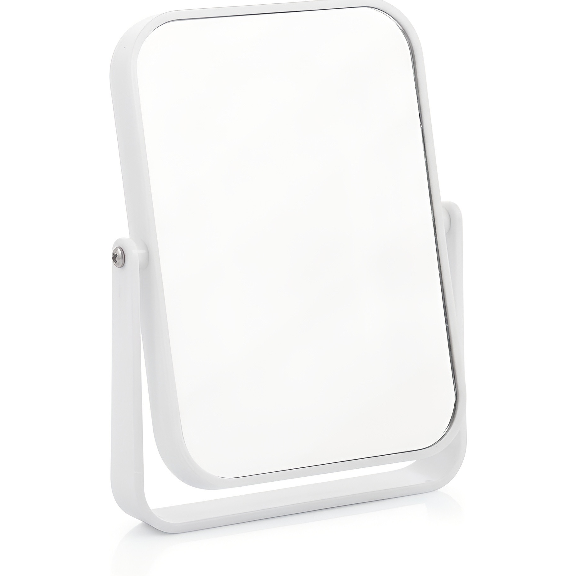 Miroir de table au fini blanc, conçu pour simplifier le maquillage et les retouches quotidiennes. Son design minimaliste apporte une touche élégante à votre coiffeuse ou à toute table d'appoint. Grâce à son mécanisme réglable, vous pourrez choisir l'inclinaison idéale, tandis que le socle assure une parfaite stabilité. Léger et compact, il se transporte facilement et se glisse dans les espaces réduits sans compromettre la netteté du reflet.