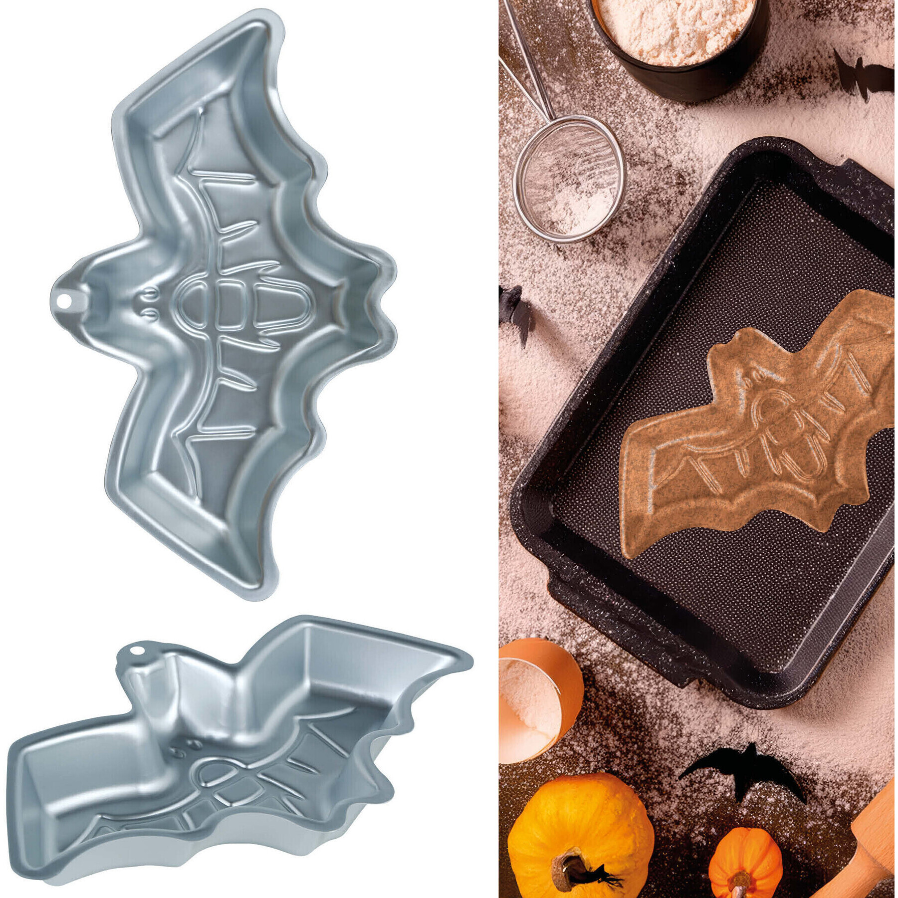 Moule à gâteau en forme de chauve-souris en métal de 32 x 19 cm
