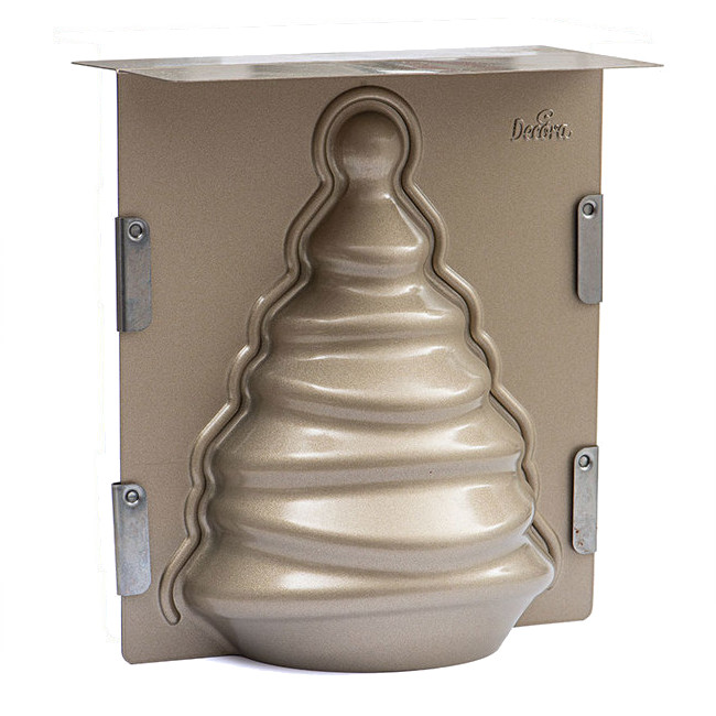 Avec ce moule en métal, vous pouvez créer une figure tridimensionnelle d'un fantastique sapin de Noël. Il se compose de 2 parties qui s'assemblent pour le cuire dans le four, tête en bas, afin qu'il conserve sa forme.