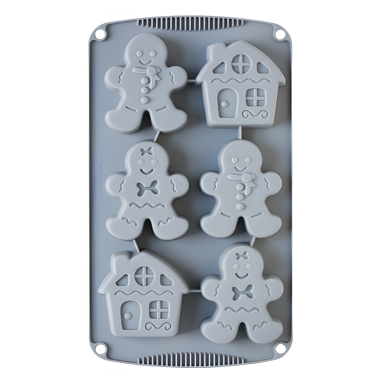 Moule en silicone pour bonhommes et maisons en pain d'épice de 30 x 17 cm - Décorer - 6 cavités