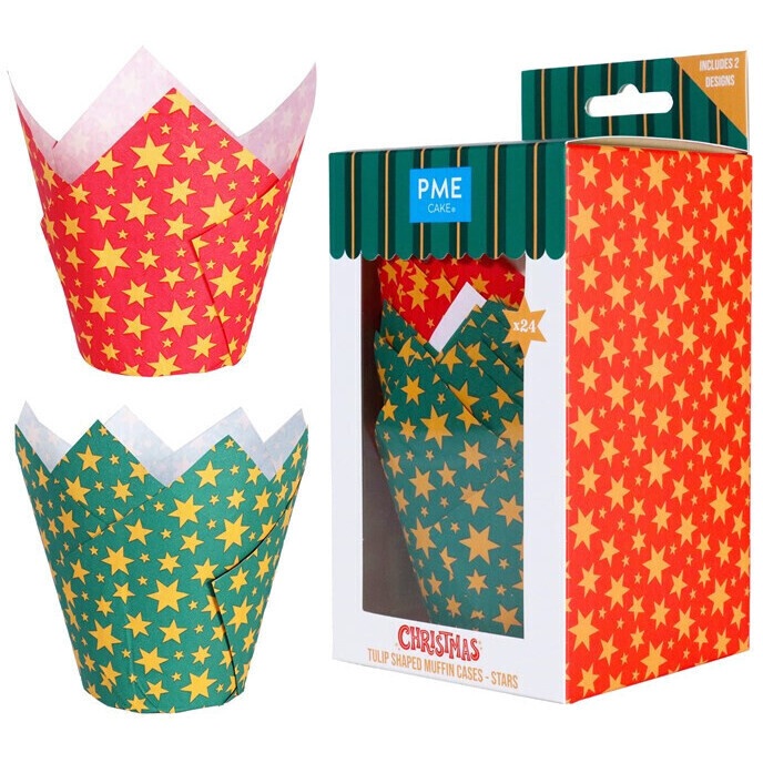 Capsules tulipe en papier pour muffins avec étoiles dorées de Noël - PME - 24 unités