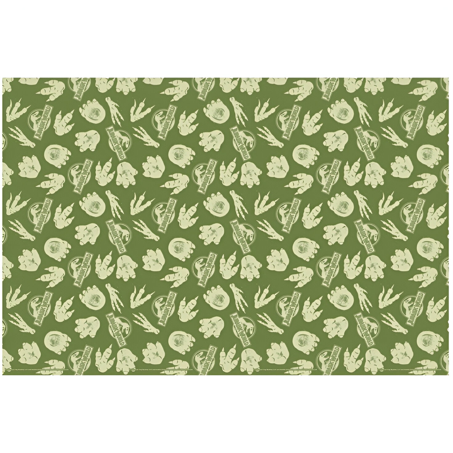 - Motif officiel Jurassic World avec dinosaures et empreintes dans des tons verts.