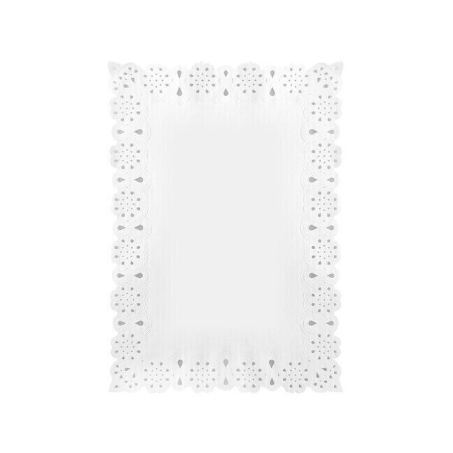 Napperons en papier rectangulaires avec un joli bord découpé en formes géométriques dont le design et l'élégance contribueront à la présentation de vos produits sur la table.