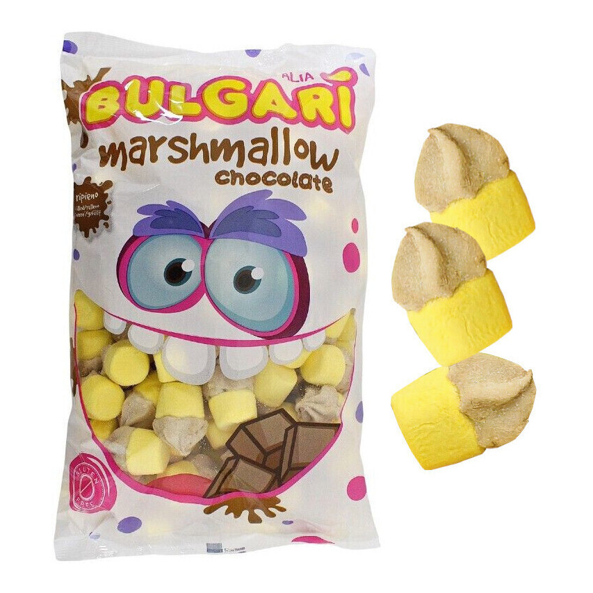 Ingrédients: sucre, sirop de glucose-fructose, eau, graisse végétale (huile de tournesol, huile de palme, huile de graine de coton, huile de carthame et huile de son de riz), agent gélifiant: gélatine alimentaire, lait entier en poudre, lactose en poudre, lait écrémé en poudre, cacao maigre en poudre, cacao alcalinisé en poudre, arômes, colorant: E100, E150c, émulsifiant: lécithine de soja 322; amidon de maïs.