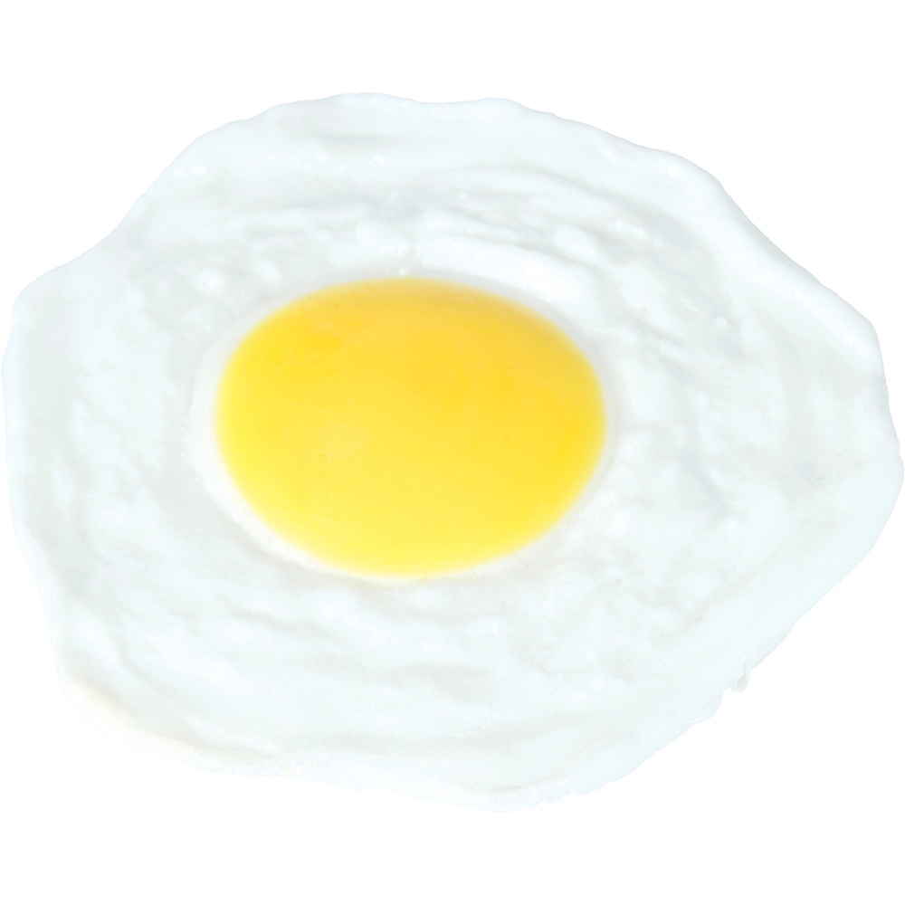 - Latex souple reproduisant la forme et le toucher d'un oeuf au plat.
