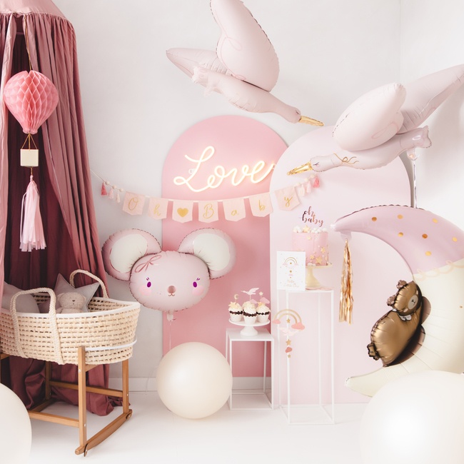Guirlande "Oh baby" en tissu avec pompons de 2,5 m - 1 unité