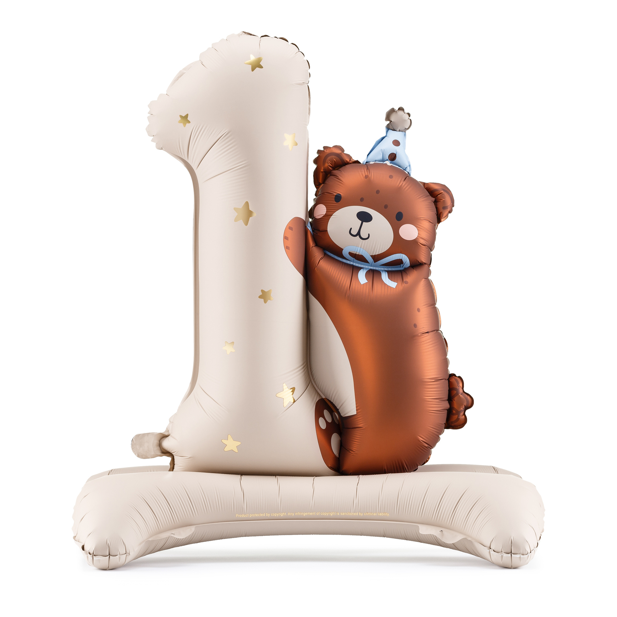 Ballon en forme de chiffre pour le premier anniversaire ourson de 81 x 72 cm
