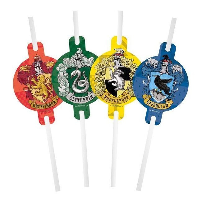 Décorez vos verres avec ces pailles de Harry Potter qui ont un médaillon en papier avec les blasons de cette fantastique saga.
