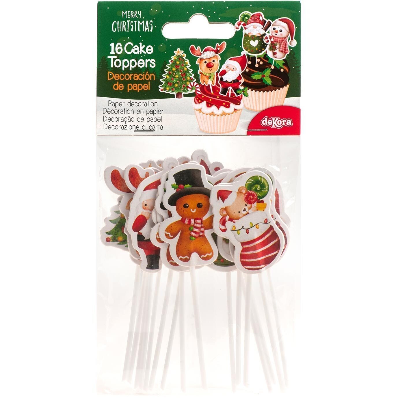 Pics pour cupcakes avec motifs de Noël variés - Dekora - 16 unités