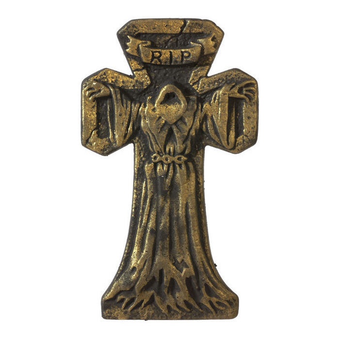 Pierre tombale en forme de croix avec effet doré RIP de 58 x 34 cm