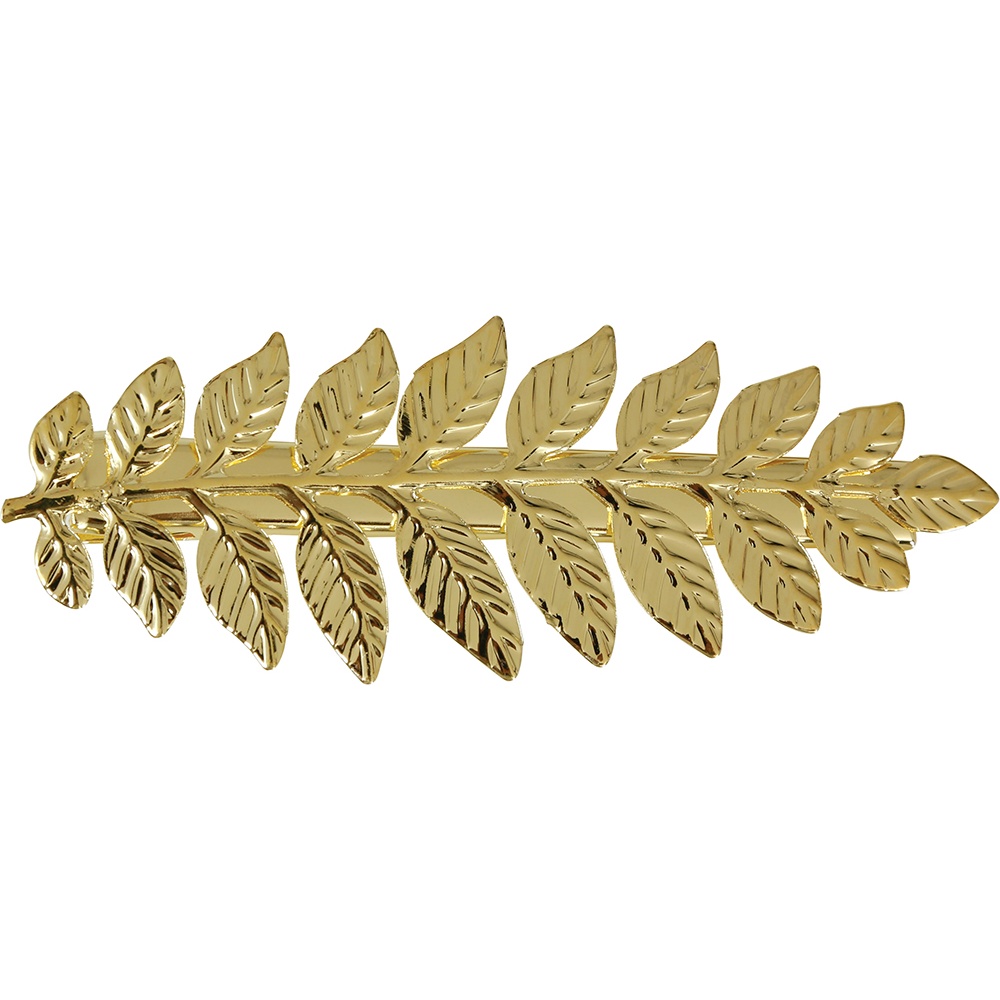 Pince laurier dorée au motif de feuilles emprunté à l'esthétique classique grecque et romaine. Elle apporte une touche raffinée et sophistiquée à toute coiffure. Son mécanisme de clip maintient fermement les cheveux pour une tenue fiable et une mise en place rapide et confortable. Légère et élégante, elle sublime votre coiffure sans l'alourdir.