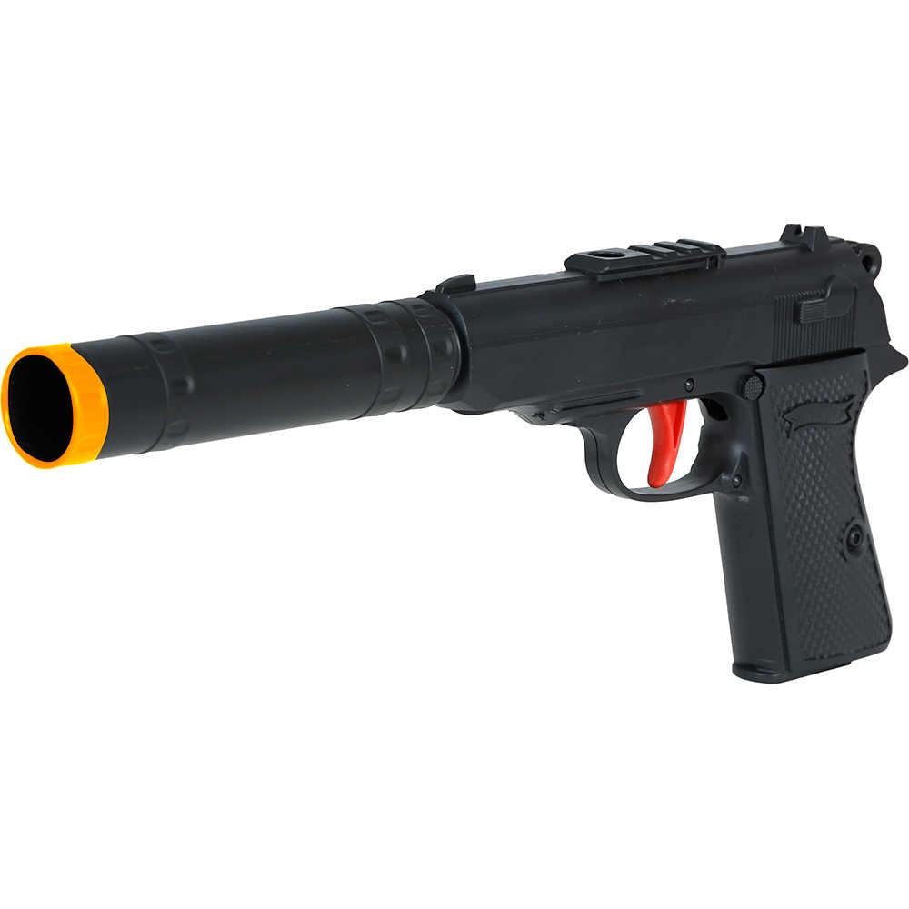 Réplique jouet avec silencieux, idéale pour compléter votre tenue d'agent secret ou pour créer l'ambiance lors de soirées à thème. Fabriqué en PVC, il allie un aspect réaliste à un poids léger pour un port agréable en main. Sa longueur d'environ 29 cm le rend facile à saisir et à manipuler lors de photocalls, carnavals et autres événements.