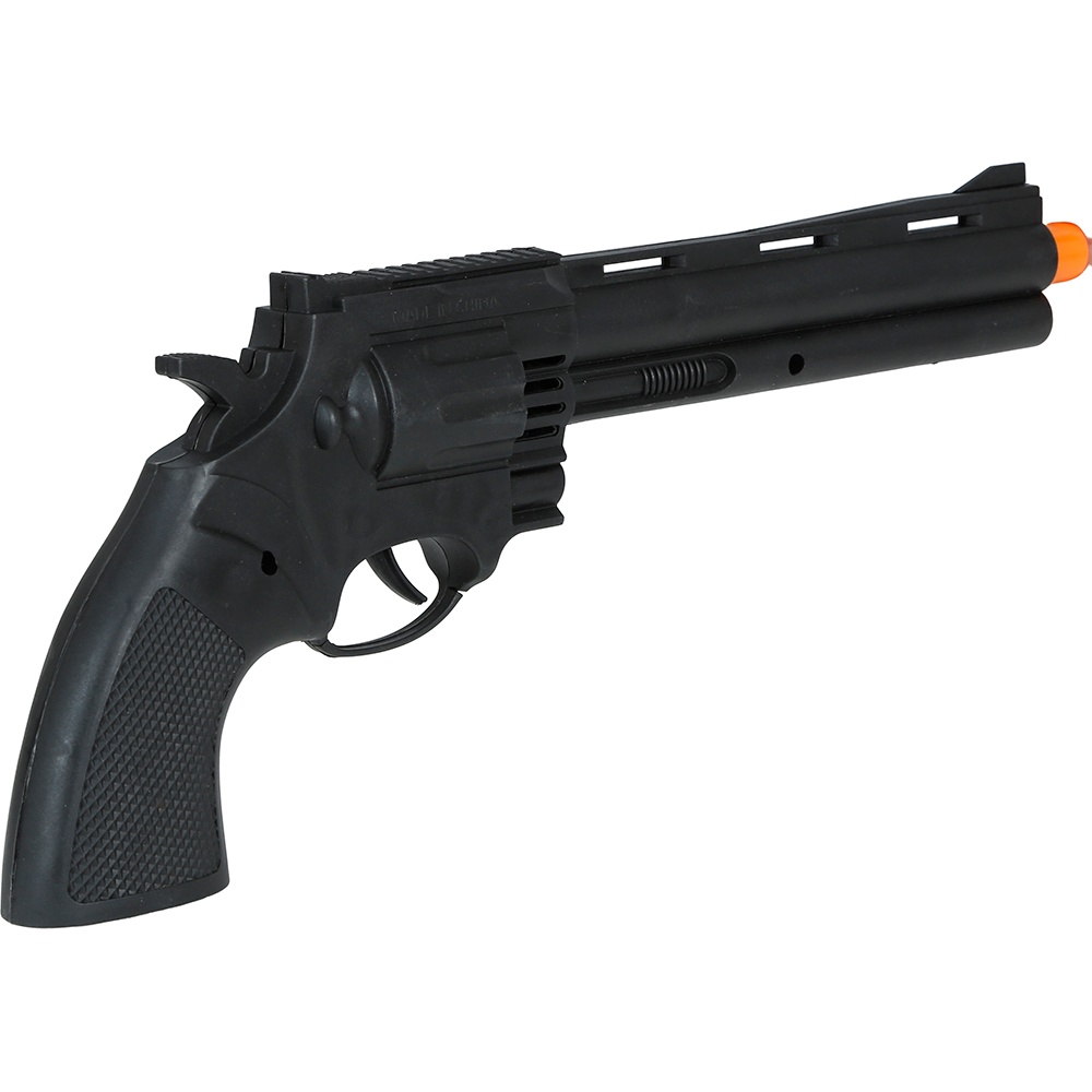 Pistolet jouet de type revolver conçu pour compléter les déguisements du Far West. Fabriqué en PVC léger et doté d'un embout orange de sécurité permettant de l'identifier comme accessoire de jeu. Idéal pour fêtes à thème, Carnaval et séances photo à ambiance western. Design visuellement réaliste qui apporte de l'impact à votre tenue sans risque.