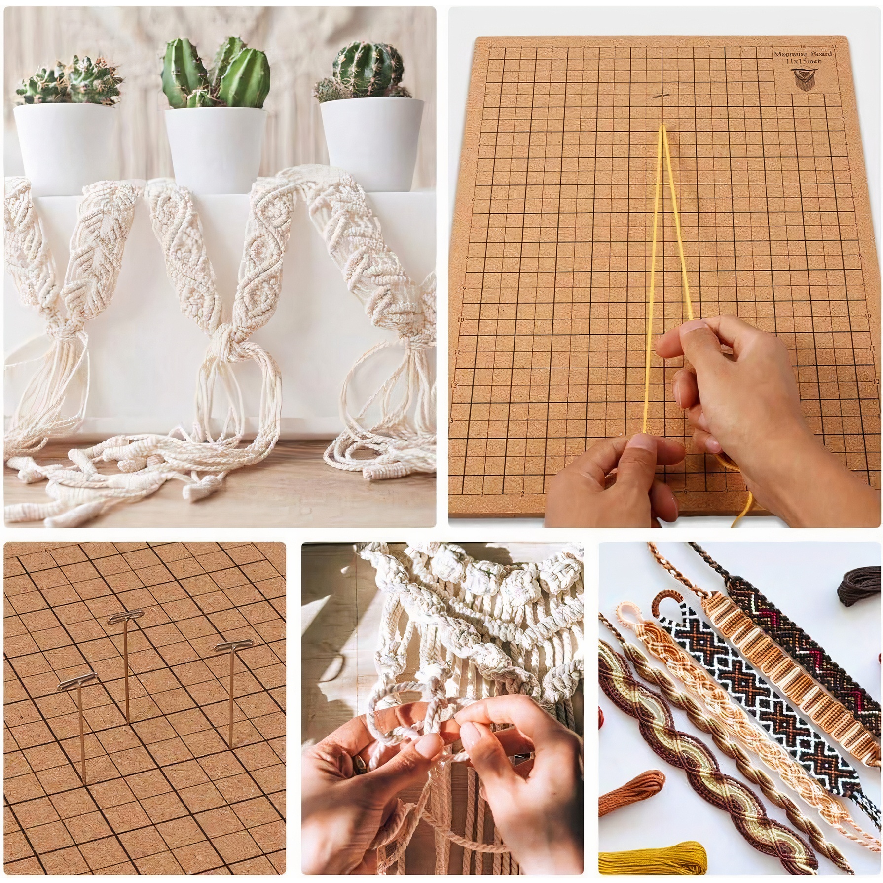 - Cette planche de macramé vous permet de maintenir et de fixer les fils pendant le tressage.