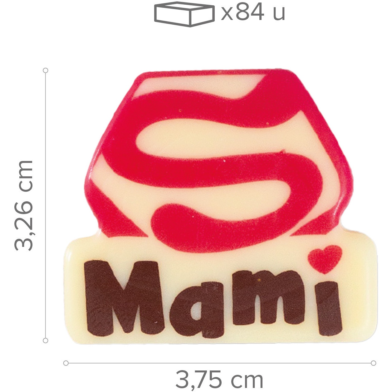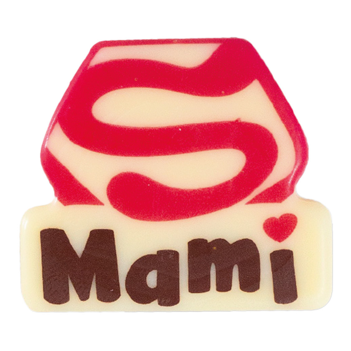Plaque décorative en chocolat blanc « Super Mami » 3,7 x 3,2 cm - 84 unités