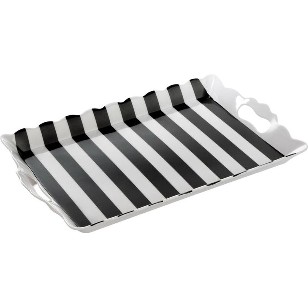 Plateau au design classique à rayures noir et blanc, qui apporte une touche moderne et sophistiquée à votre table. Son format compact et ses poignées intégrées vous permettent de présenter aisément des apéritifs et de sublimer vos événements. Idéal pour assortir à une vaisselle contrastée et créer des ambiances pleines de style.
