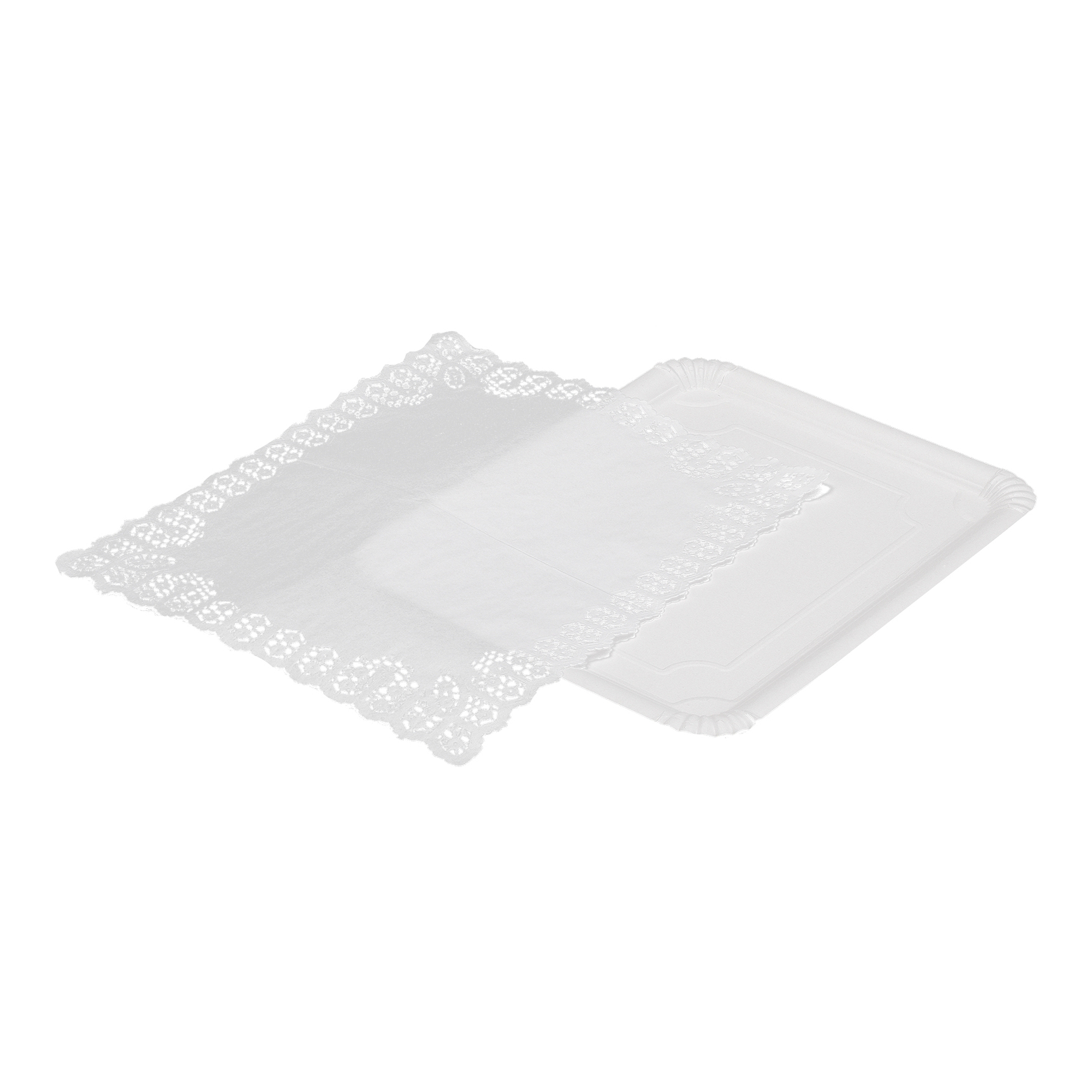 Plateau rectangulaire en carton de 38 x 31 cm avec dentelle