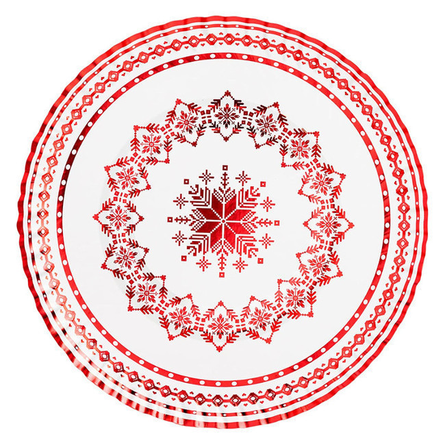 Plateau rond en carton de 30 cm avec broderie rouge - 1 unité
